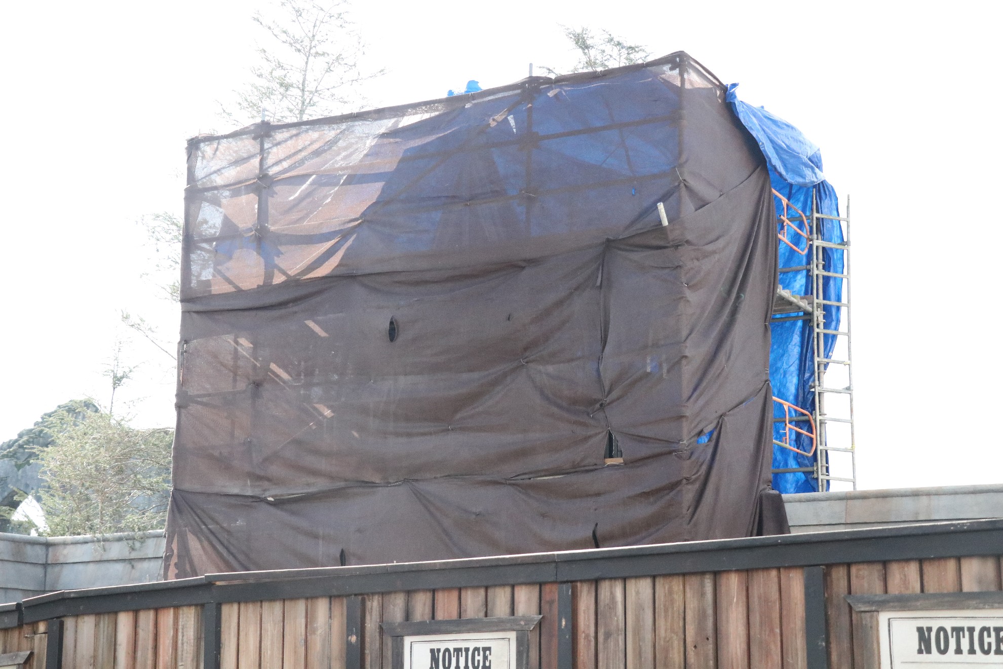 The entrance to Storm Force Accelatron is behind walls. A temporary entrance has been set up to the side.