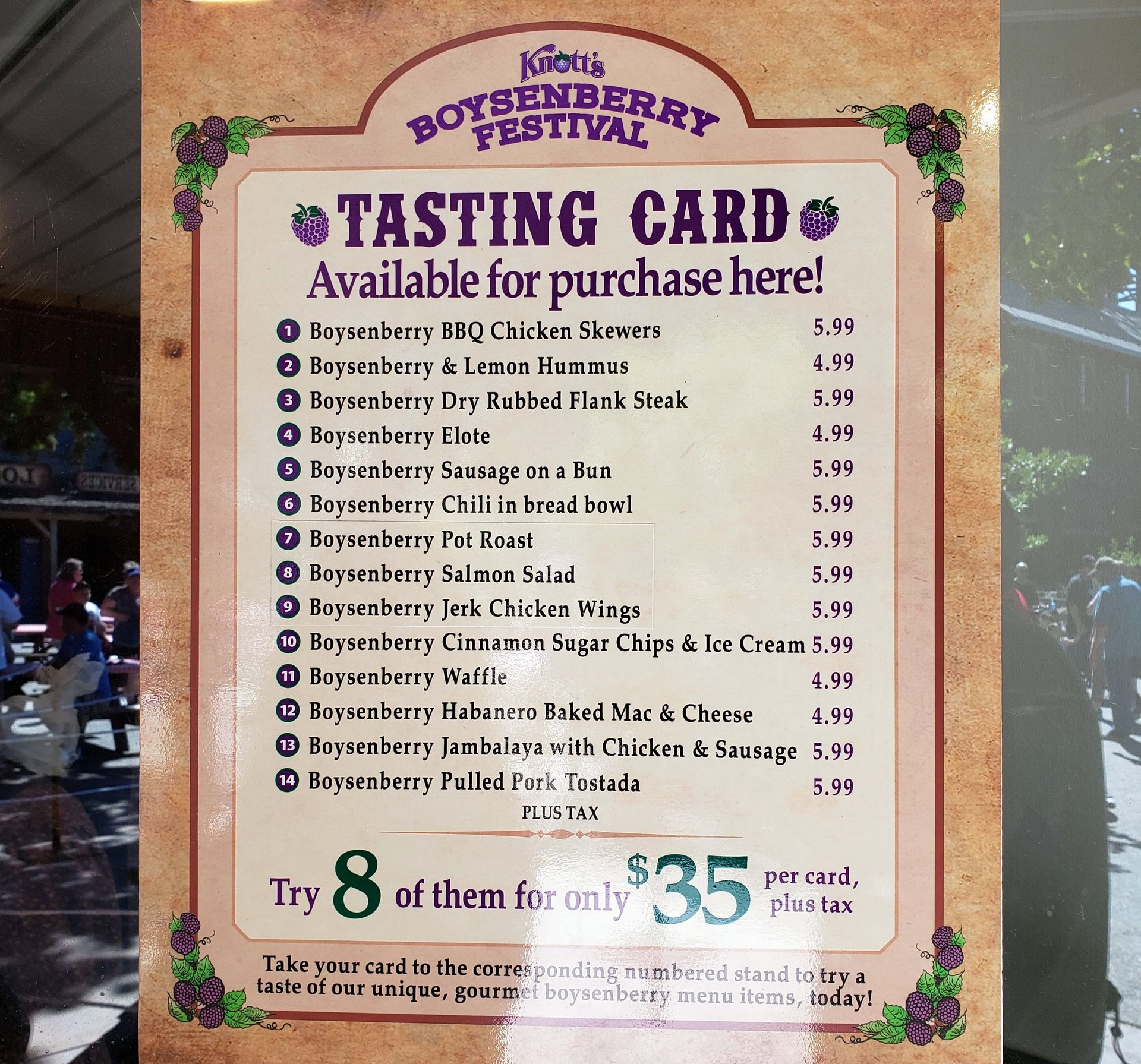 This also isn’t the entire extent of the offerings, either. All around the park are more offerings not offered on the sampling card. There’s boysenberry bbq pizza, boysenberry dole whips and more.