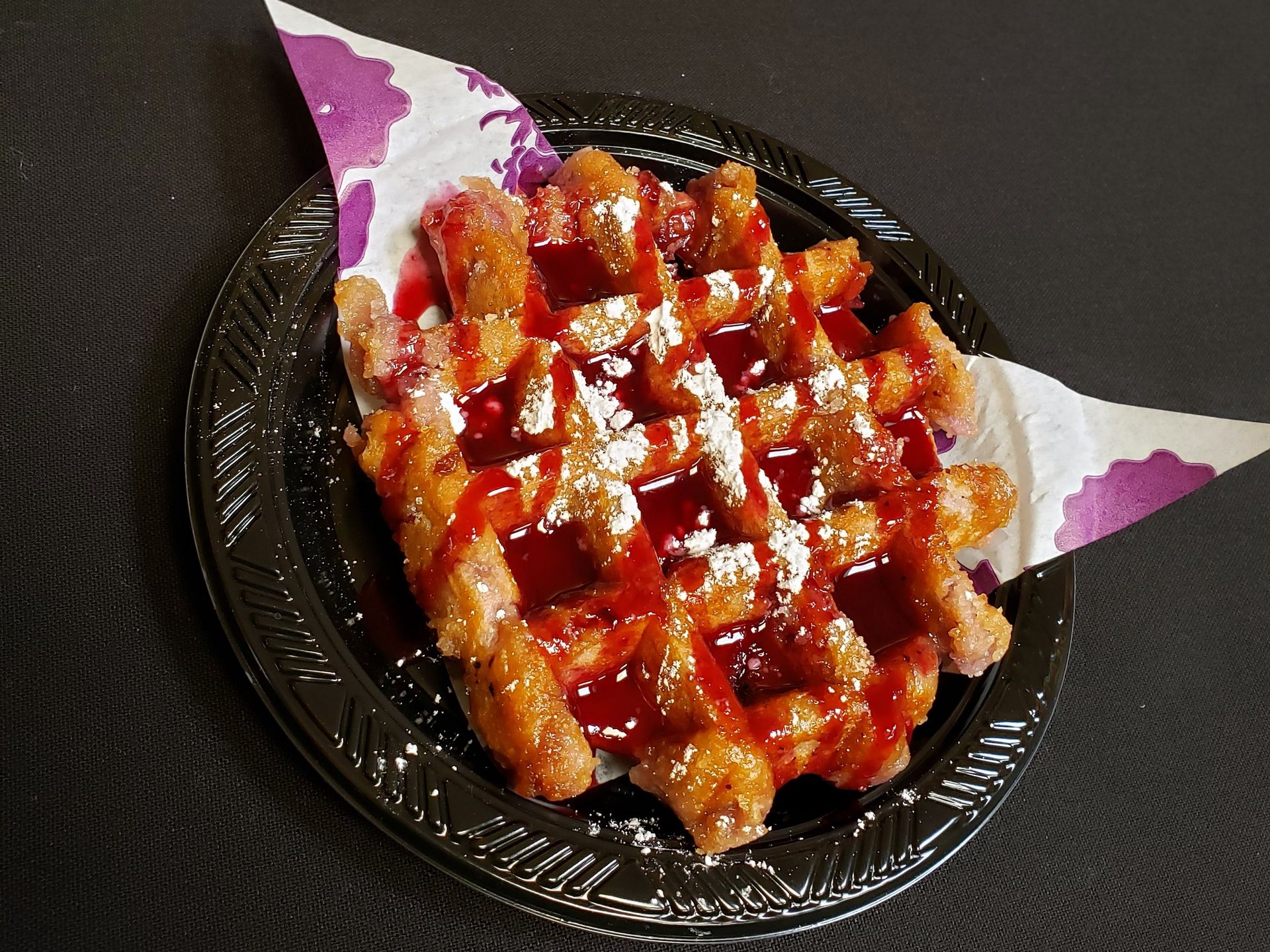 We made our way through about half of this list on our first day and had no complaints aside from trying to track down a few of the more out-of-the-way locations. Pay attention to the actual descriptions and you’ll notice it’s more than just pouring colored sugar over an established meal. It’s a boysenberry waffle with boysenberry syrup.