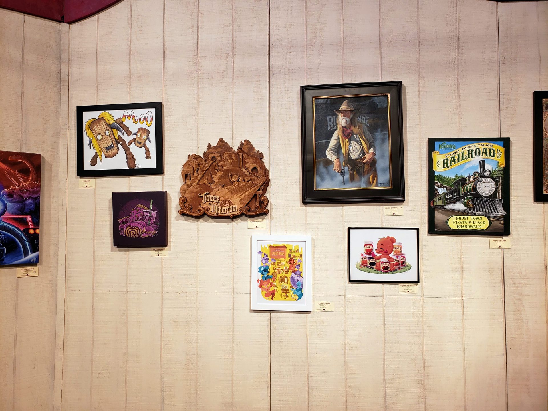 Beyond the berry, there’s a lot more other offerings going on. Inside the Wilderness Dance Hall is a wine tasting, featuring a wide selection of wines and craft beers, and an art show showcasing the long history of Knott’s Berry Farm, titled “Tied Up In Knott’s.” Knott’s has been doing these art shows more frequently for events over the last few years, including during Scary Farm, and it’s been appreciated. We wish it had a permanent spot in the park year round now that the demand for it has been established.