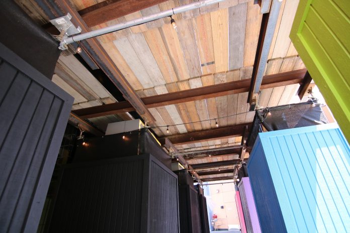 After spotting the first signs of visible progress on the future location of Antojitos on our most recent update, construction has rapidly continued with the sight of additional beams forming a possible new exterior for the restaurant.