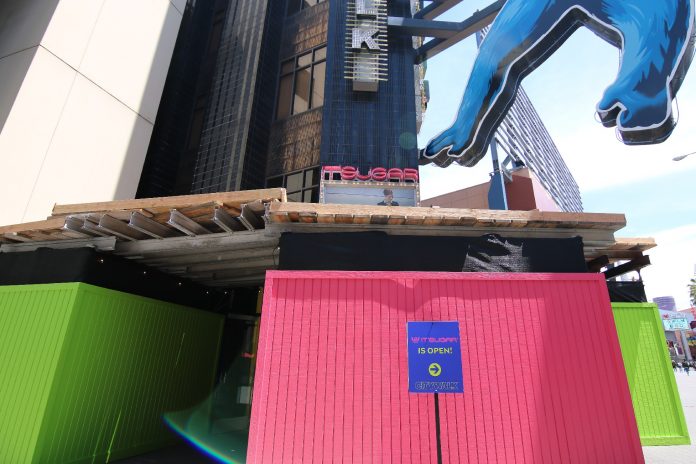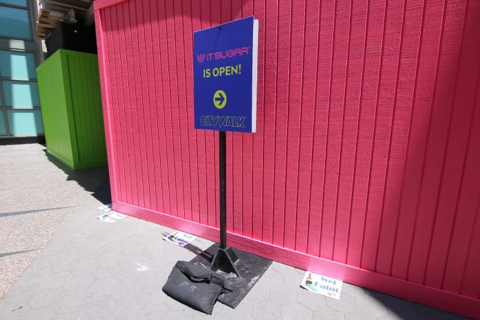 The IT’SUGAR candy store is currently undergoing refurbishment on the exterior of its building – most notedly a new paint job – though the store remains open as usual and completely unaffected just inside.