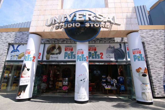 The Universal Studio Store now sports a storefront themed to Illumination’s upcoming sequel, The Secret of Pets 2. New merchandise for the film can be found just inside of the main entrance to the store, in addition to an assortment of other various arrivals. Dinosaur plushies based off of the Jurassic World films, a cartoon-style EVAC plushy from Transformers: The Ride 3D, as well as merchandise from the famed American Ninja Warrior TV show are among the highlighted items available for purchase throughout the store.