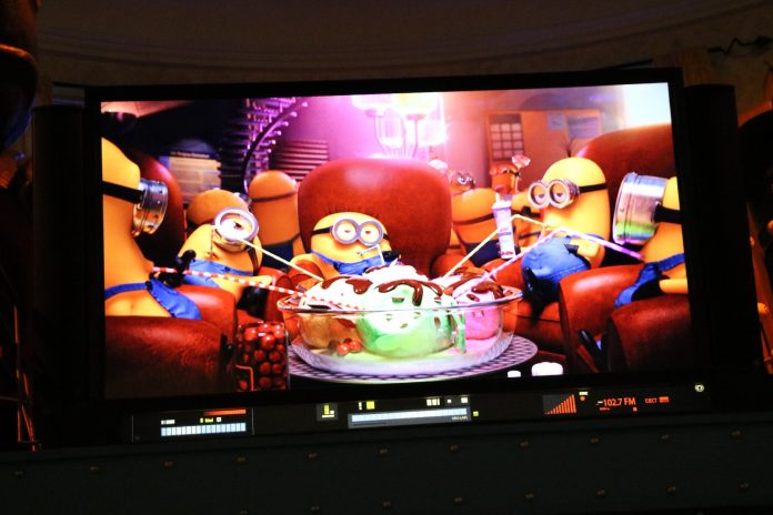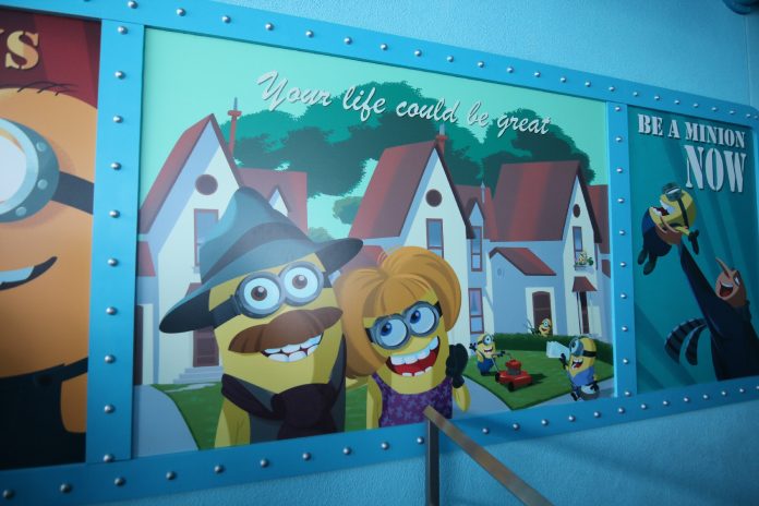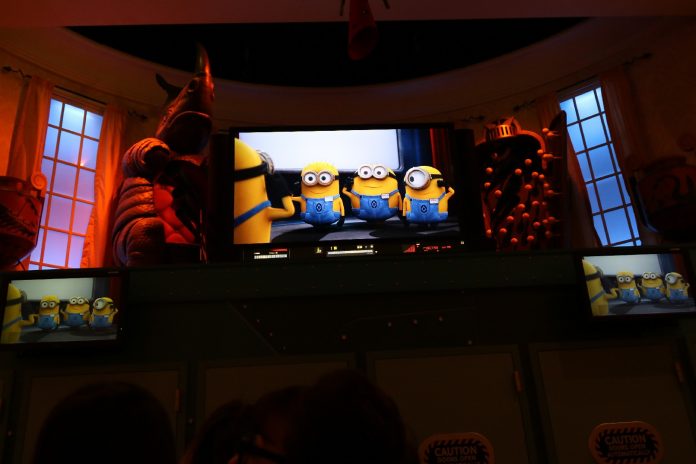 Following the recent removal of 3D from the attraction, the Minion goggle pick-up location has been sealed off with additional posters fitting in with those found throughout the queue. In addition, the first preshow video depicting proper and improper goggle usage has been replaced with the video from Universal Studios Japan’s iteration of the preshow.