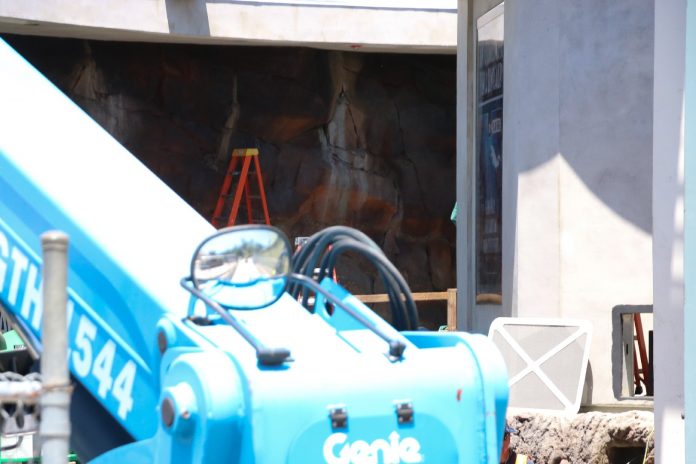 The opening scene of the ride just at the top of the lift hill has been revealed to feature a dinosaur fossil reminiscent of the Mosasaurus from the film. Dino Play also appears to be receiving a new addition with the framework for a small structure on the playground taking shape.