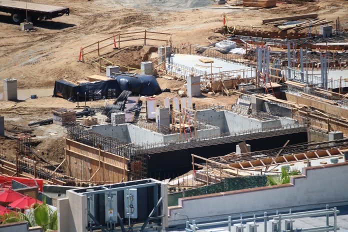 Moderate progress continues on the leveled empty lot adjacent to the Jurassic themed area and Transformers: The Ride 3D. What seems to be the foundational curve of a track or building marks the most significant change on the unannounced location, though mild progress on other structures throughout the plot has occurred as well.