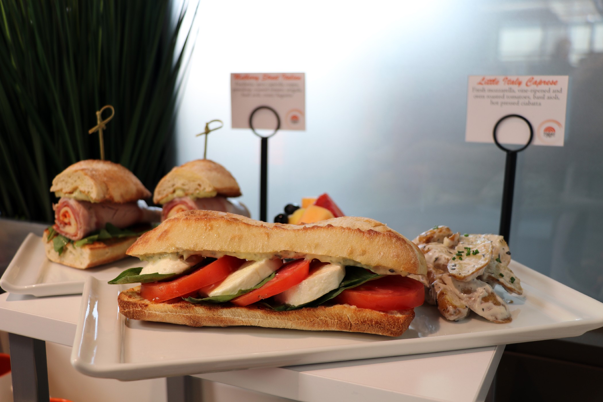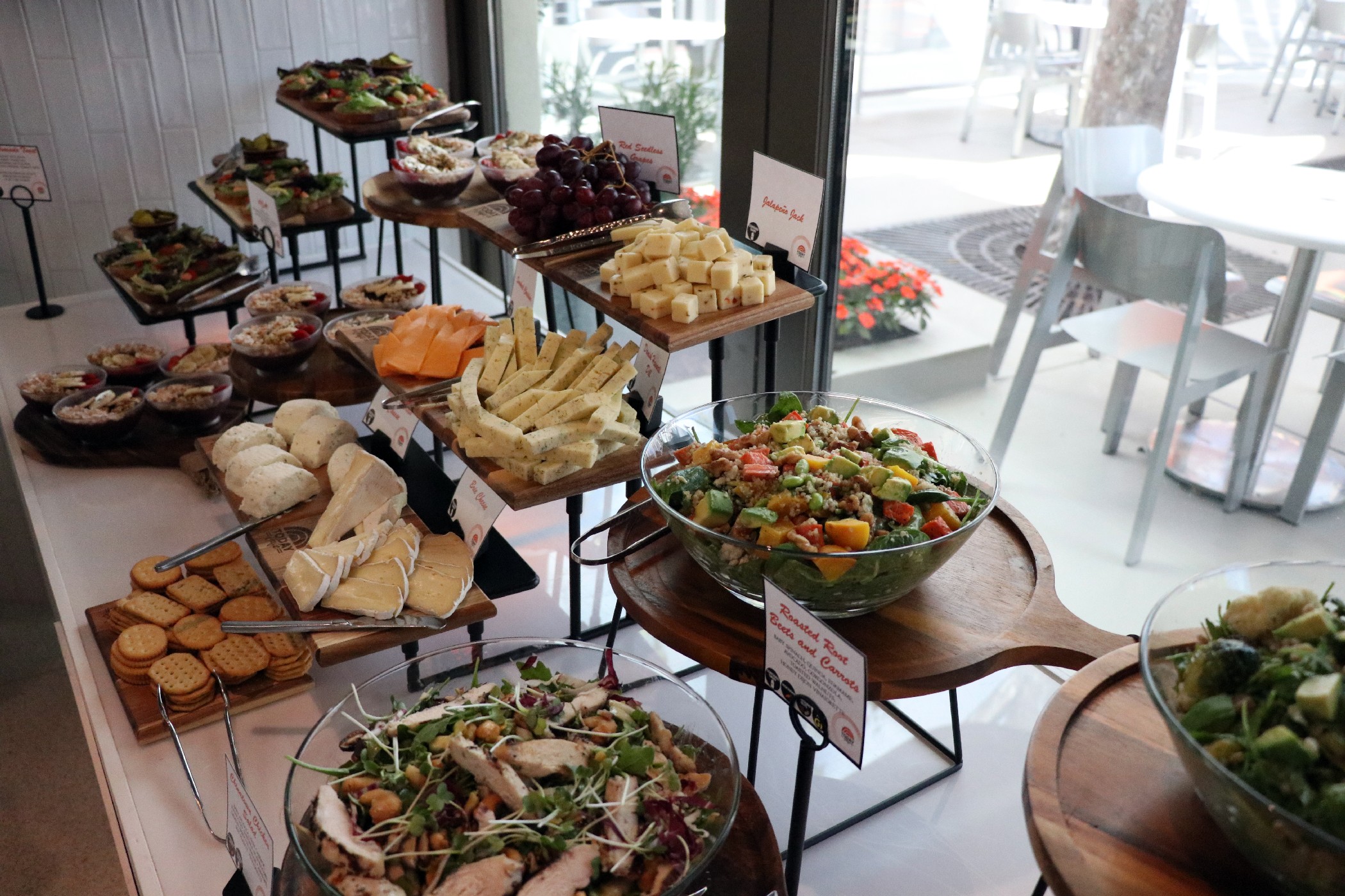 The cafe serves specialty food and beverage options, including fresh in-house baked pastries, salads, sandwiches, and locally-roasted coffee.