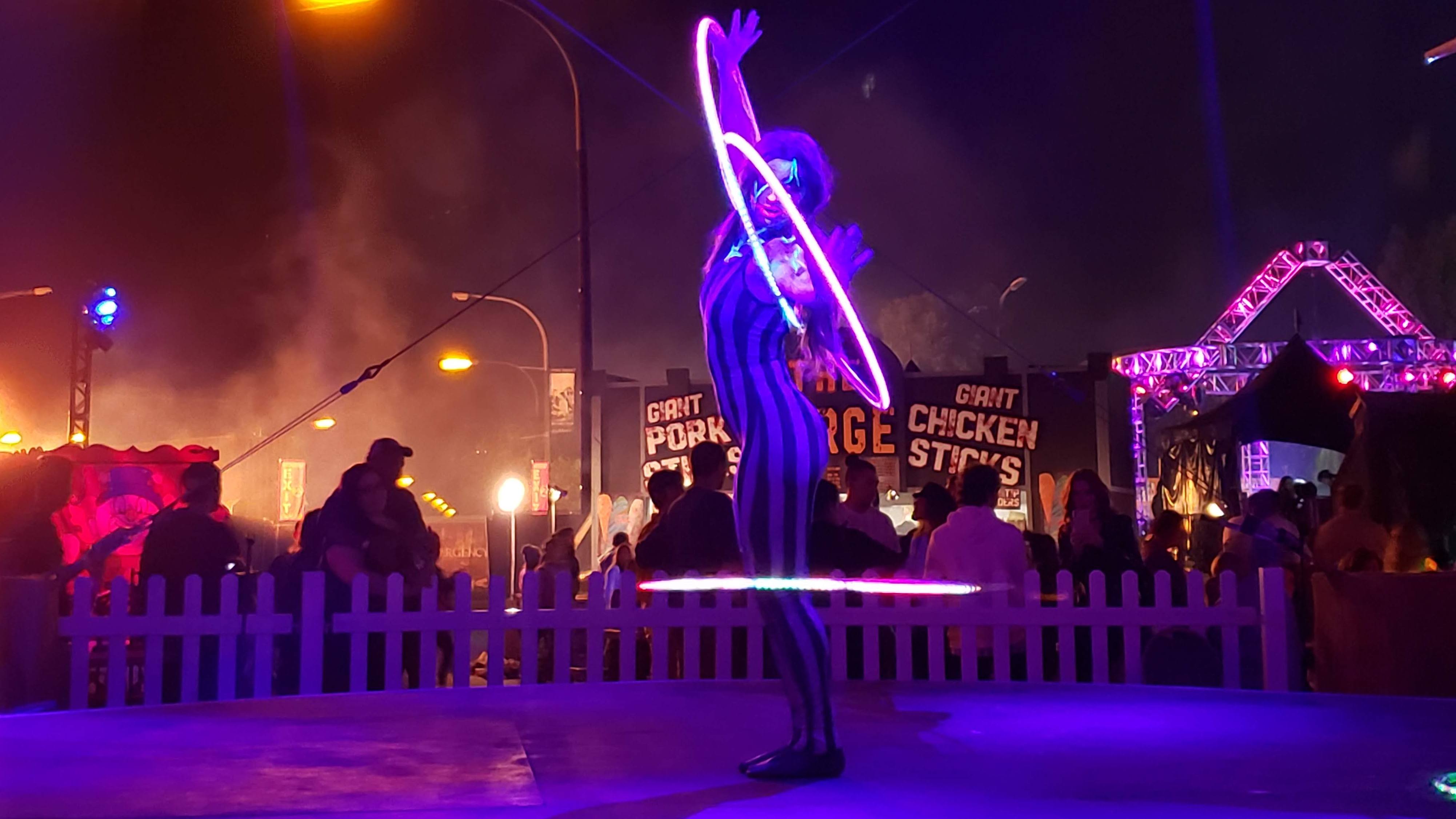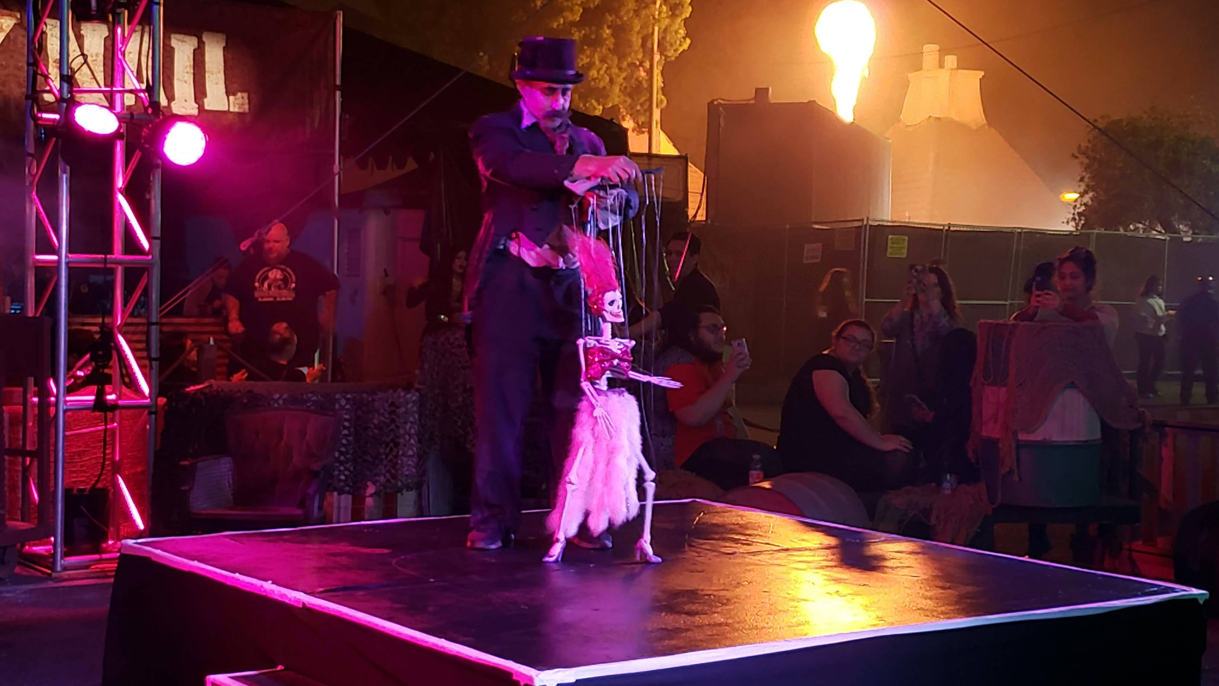 And I want to reiterate, these acts are what I love about Dark Harbor. It’s a respite from the scary mazes. There’s so much variety and talent. Fire dancers, aerialists, magicians, mimes, hula hoop dancers, singers and even puppeteers with marionettes. It’s a certain Halloween magic that allows someone that plays 1930s tunes on a banjo to put on some scary makeup, and suddenly it’s a perfect fit for Dark Harbor. My only wish was for the return of that small stage near the Circus secret bar. The rapid-fire sequencing of musicians that performed there last year was a real treat and I was hoping to find it again. Thankfully we heard a few of our favorites belting out a few tunes, like the one who only went by the name “Mama,” but without a schedule on the map, they were hard to track down.