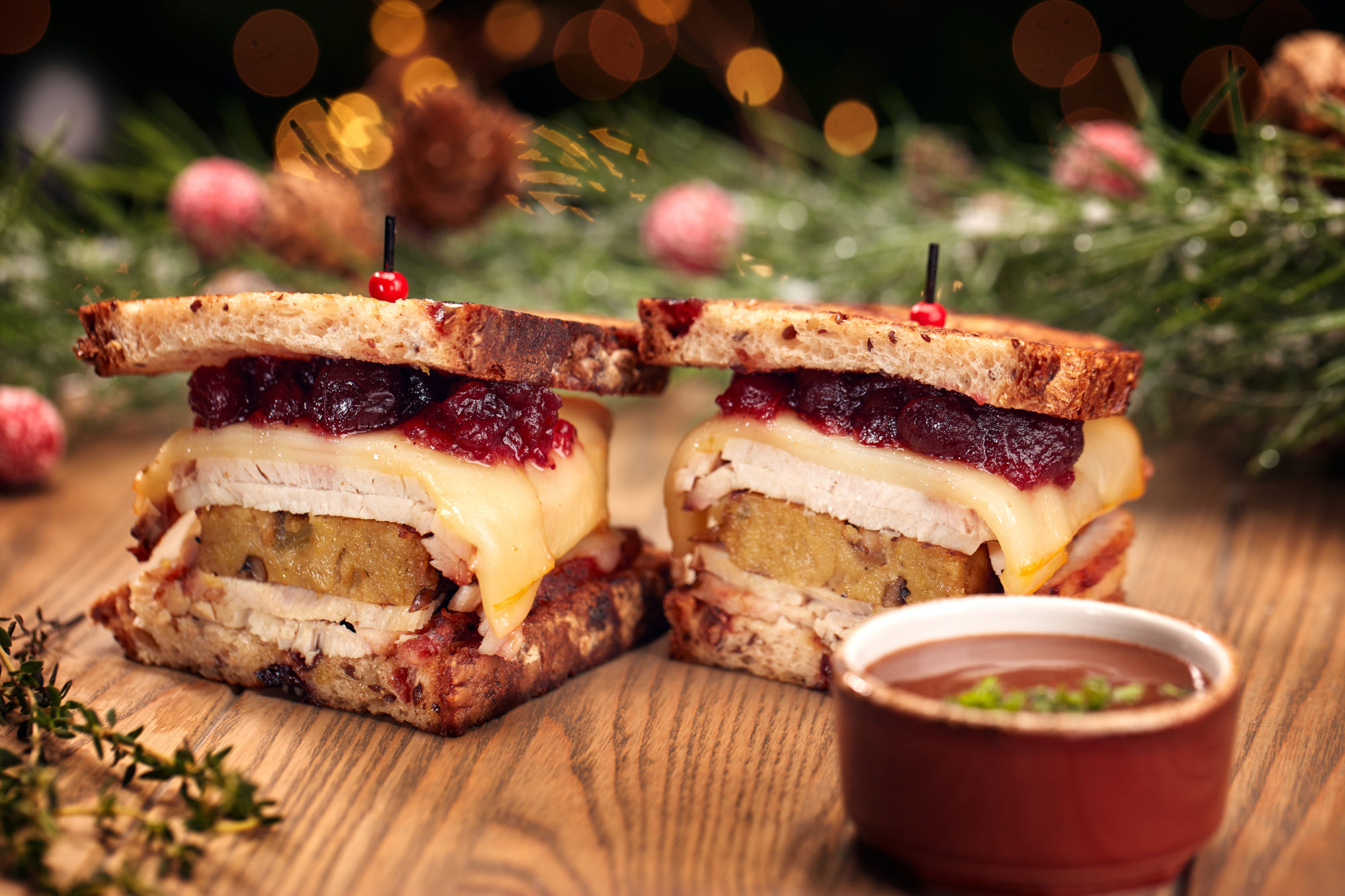 Universal will be offering a traditional Holidays meal of a mixed green salad, herb-roasted turkey, cornbread stuffing, roasted potatoes, sautéed & steamed vegetables, served with a flaky-crusted apple pie for dessert. The Holiday meal will be available at Classic Monsters Café in Universal Studios and Thunder Falls Terrace in Islands of Adventure. Voodoo Doughnut in CityWalk will offer a “Stuffed Santa Suit” doughnut set – which are yeast doughnuts dipped in Vanilla icing; one filled with Bavarian & white chocolate topped with Coconut, the other filled with peppermint chocolate cream. Breadbox will also be serving a “Not Your Normal Leftover” Holiday Sandwich