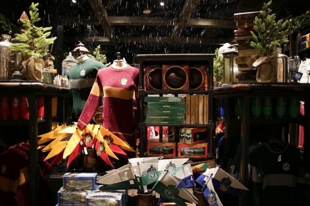 As guests explore the streets of Hogsmeade, they can sip on a hot Butterbeer and admire the stunning holiday décor adorning each and every building. Inside of the land’s various shops, a selection of unique Harry Potter-inspired Christmas decorations, including ornaments, stockings, tree toppers, and more, are available for purchase as well.