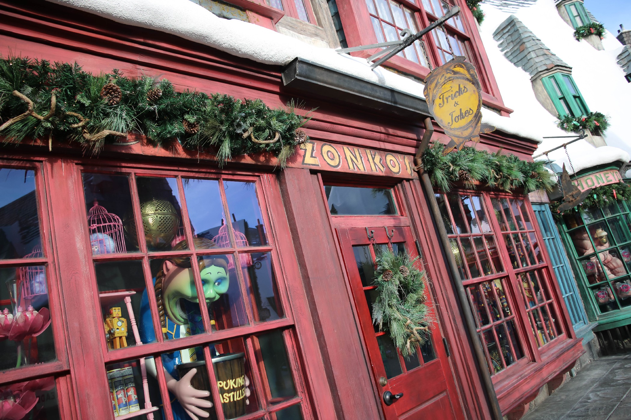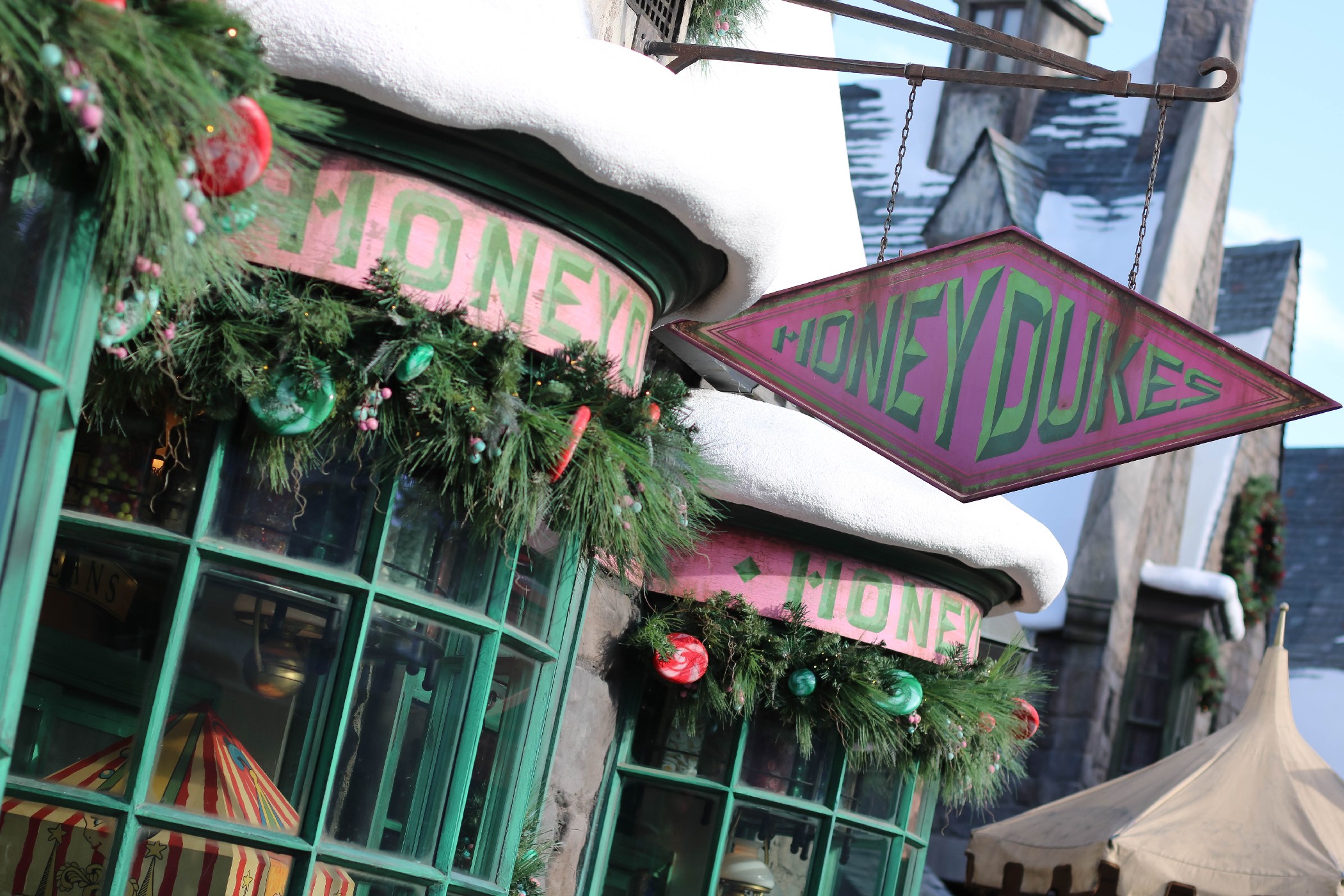 To wrap up a day in the park, guests can flock back to Hogsmeade for a viewing of The Magic of Christmas at Hogwarts Castle. As a precaution for holiday crowds, we recommend arriving at least half an hour early to secure a good spot for the show in the designated viewing area. The festive nighttime spectacular once again lights up Hogsmeade with gorgeous, vibrant imagery and animations that twirl across Hogwarts castle for all to see. The show itself remains the same as previous years, though the nightly snowfall throughout Hogsmeade village that followed each showing last year is no more. However, snowfalls still periodically occur in the Wizarding World of Harry Potter section of the Universal Studio Store at the front of the park.