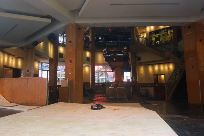 Hard Rock Café closed its doors for the final time on January 6, 2020, to make way for Toothsome Chocolate Emporium. Most of the guitar has already been taken down along with the restaurant’s signage, and all tables and chairs have been cleared as construction begins.