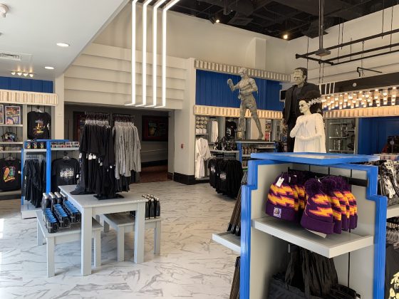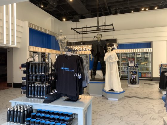 A majority of the store features Bourne merchandise, but the beloved Classic Monsters merchandise that debuted last year is located closer to the exit of the Horror Make-Up Show. In addition to the Classic Monsters, merchandise from other properties are available for sale – including Ghostbusters, Psycho, and Jaws.