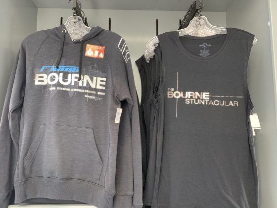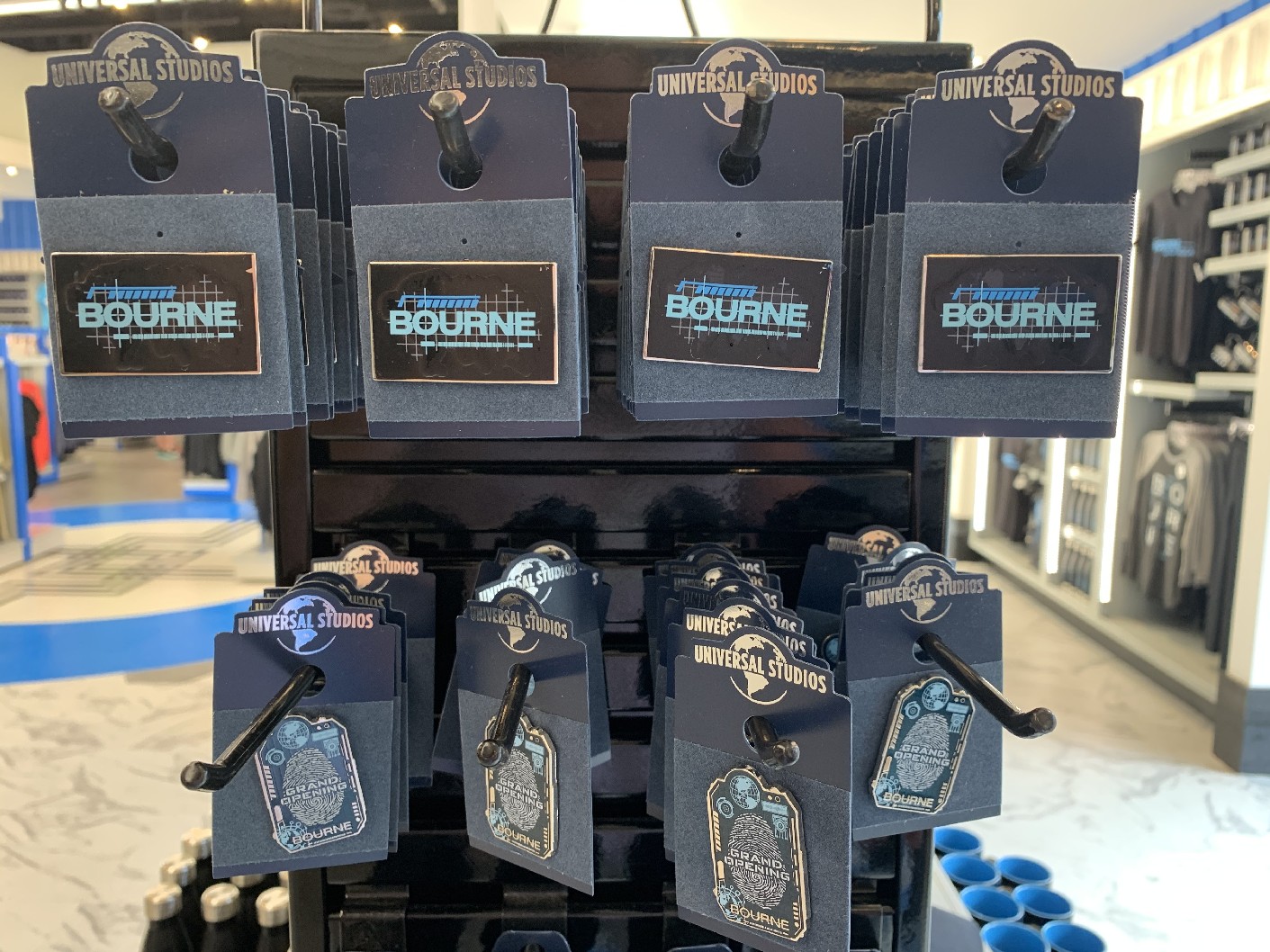 The Bourne Stuntacular merchandise is pretty straight forward, with shirts, hats, mugs, and jackets available for purchase. A set of pins is also available, including a pin celebrating the eventual Grand Opening of the attraction.