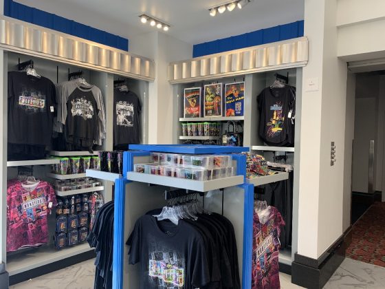 The store is located in Hollywood between the Bourne Stuntacular and the Horror Make-Up show, serving as an exit for both.