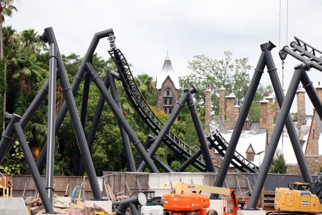 Today during Universal Orlando’s passholder preview reopening, we were able to get a good look at the coaster’s construction as the track begins to be installed.