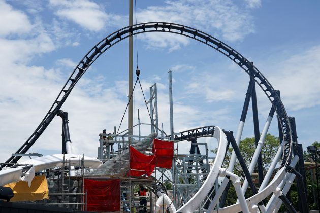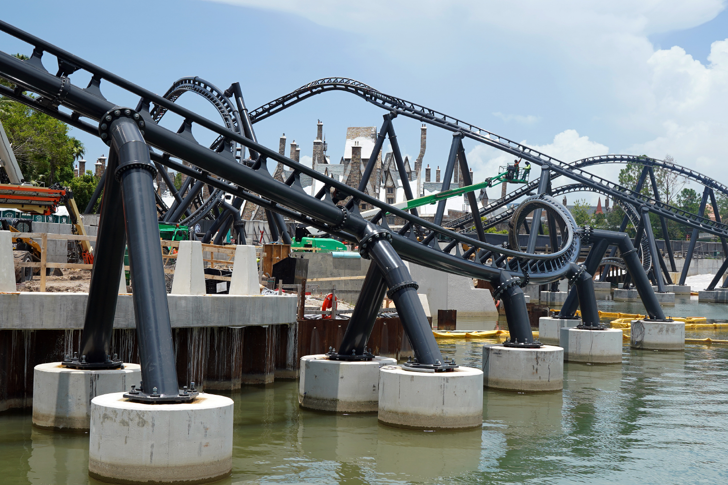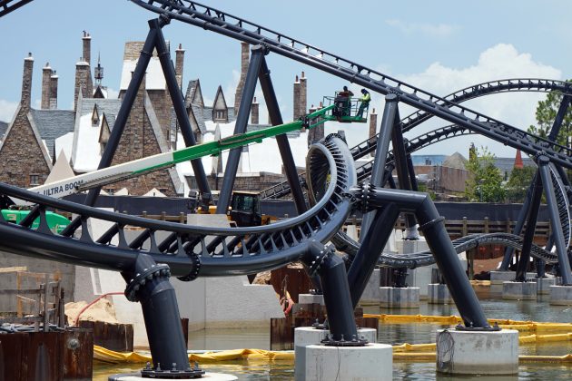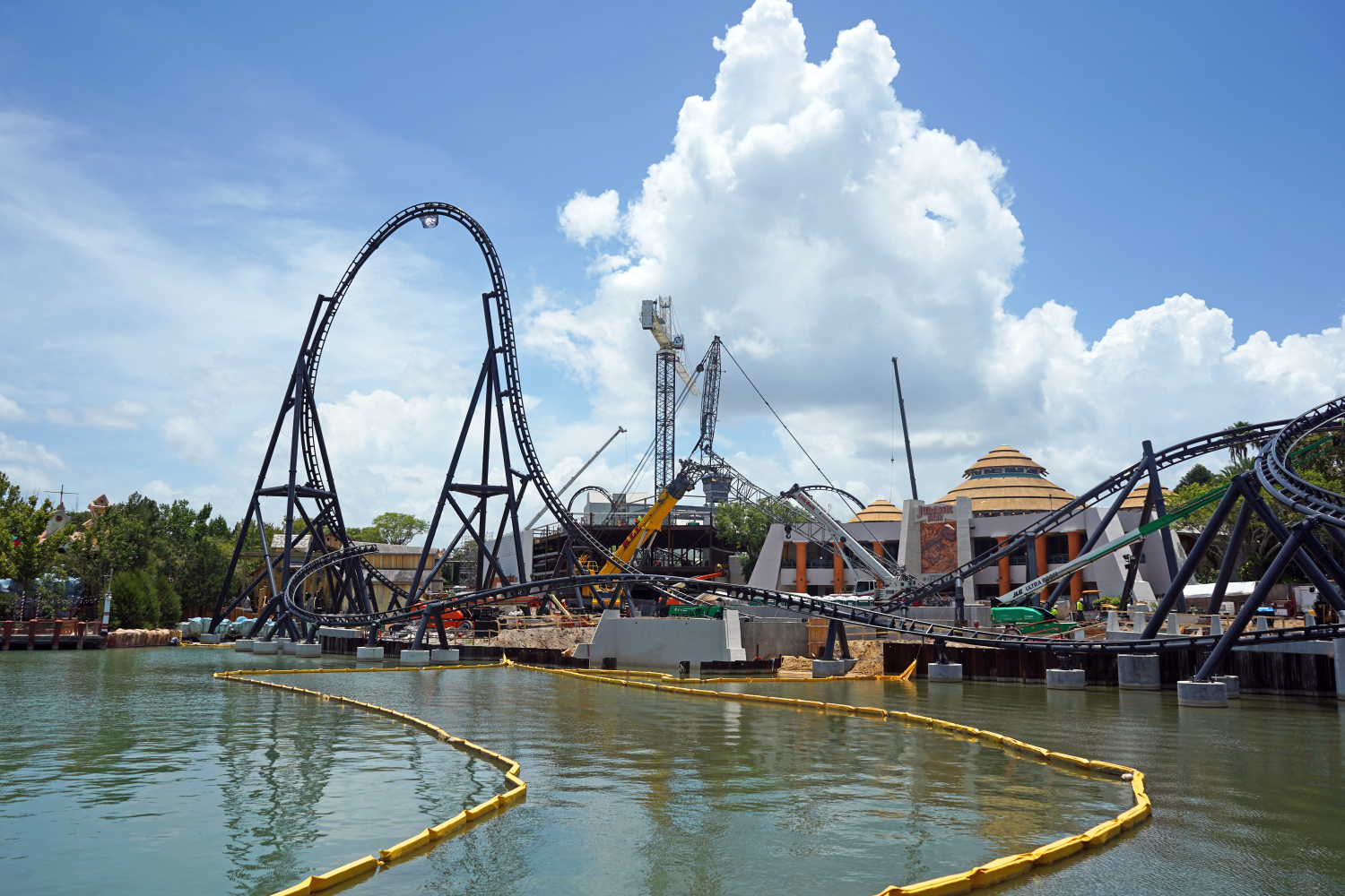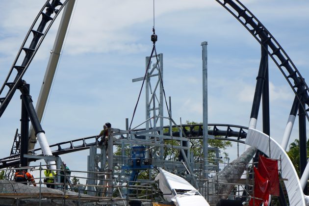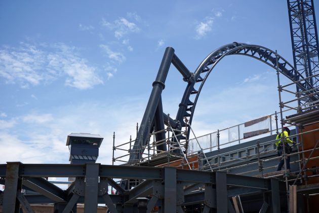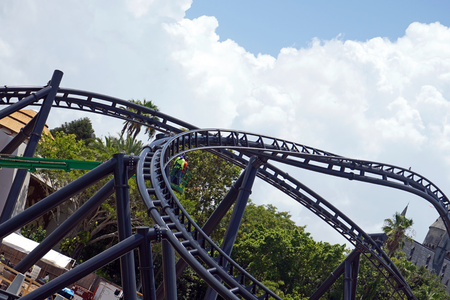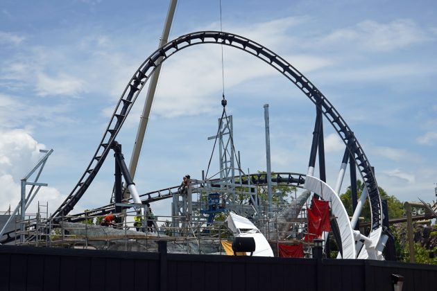 Most of the track circuit is now complete, with just a few pieces remaining to be installed near the loading platform. While Universal hasn’t announced the project, it is believed to be based on the Velociraptor, with heavy ties to the Jurassic World franchise. Based on the coaster track that has been installed, we can expect a lot of inversions and air time – and will definitely be a very thrilling addition to the Islands of Adventure lineup.
