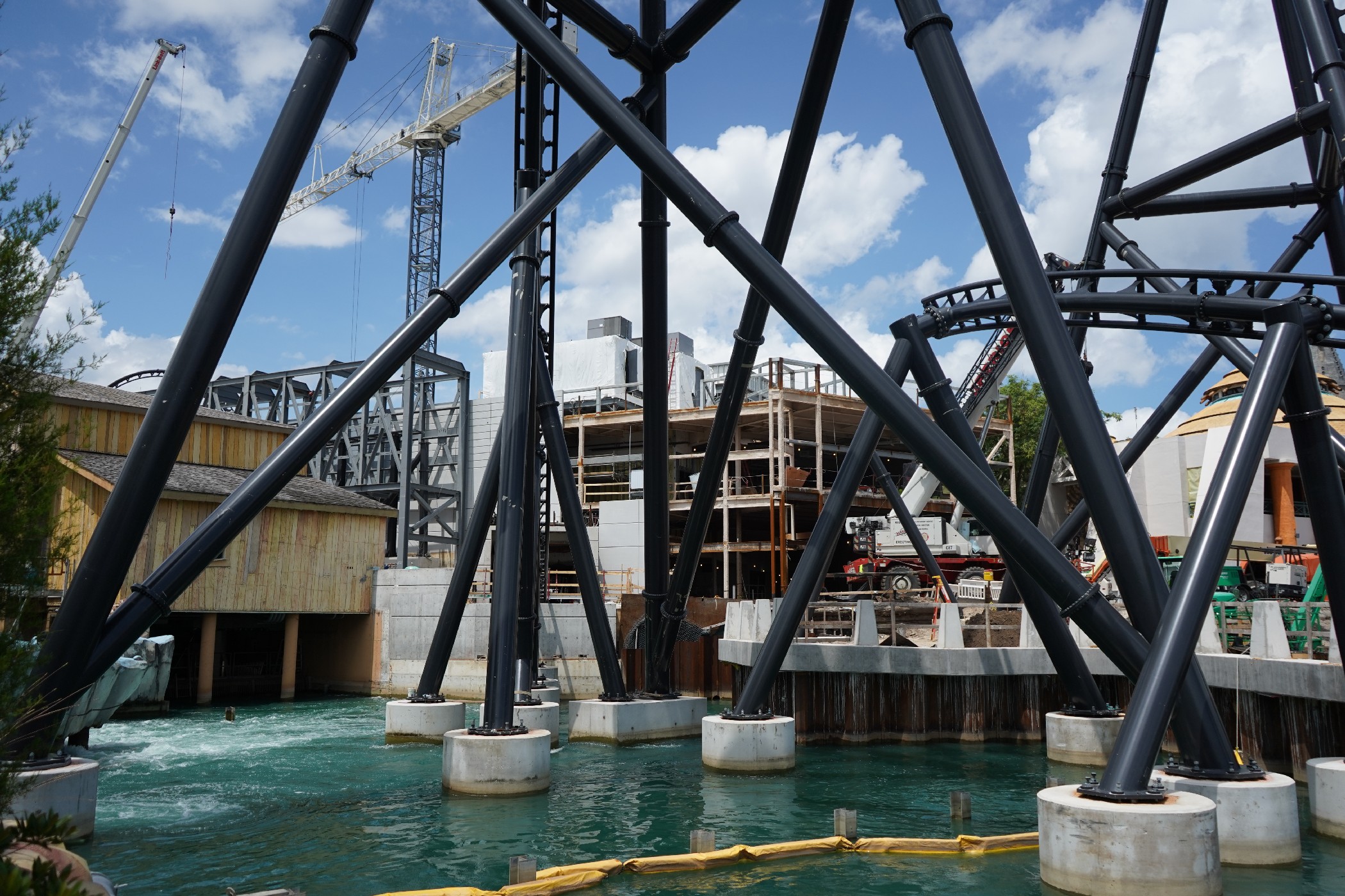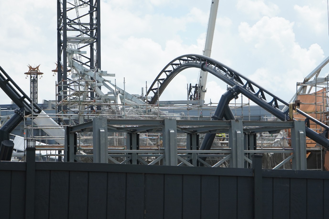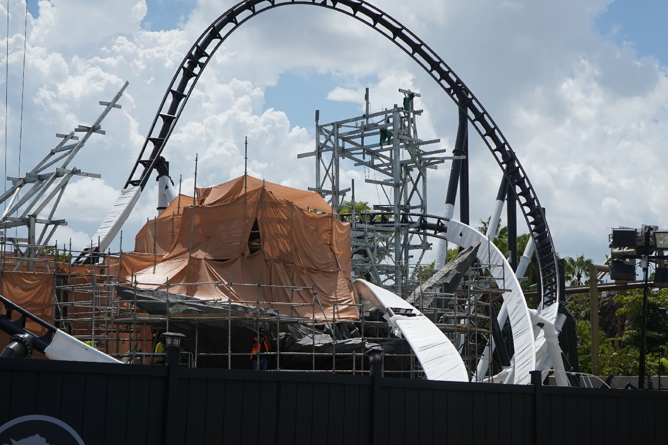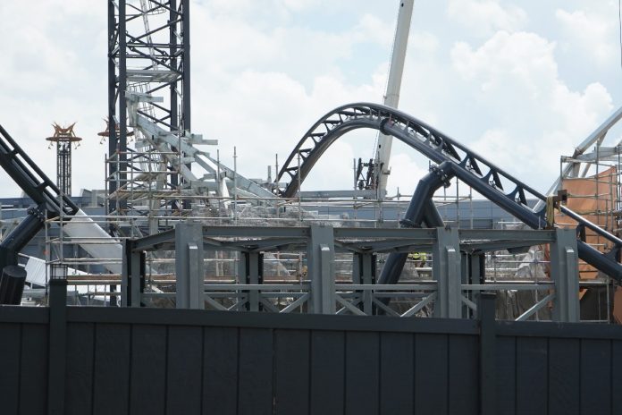 The coaster is looking fantastic! Universal has yet to announce the coaster officially, so we’re still in the dark about specifics. Much of the track has been installed, with just the last bank back into the load station left to install.