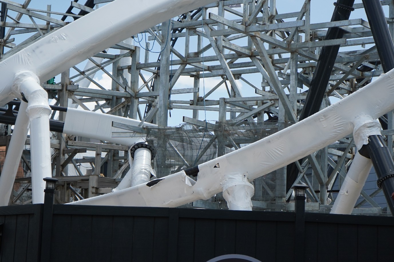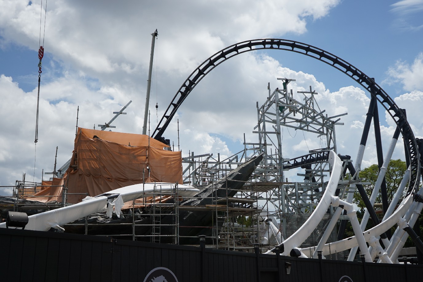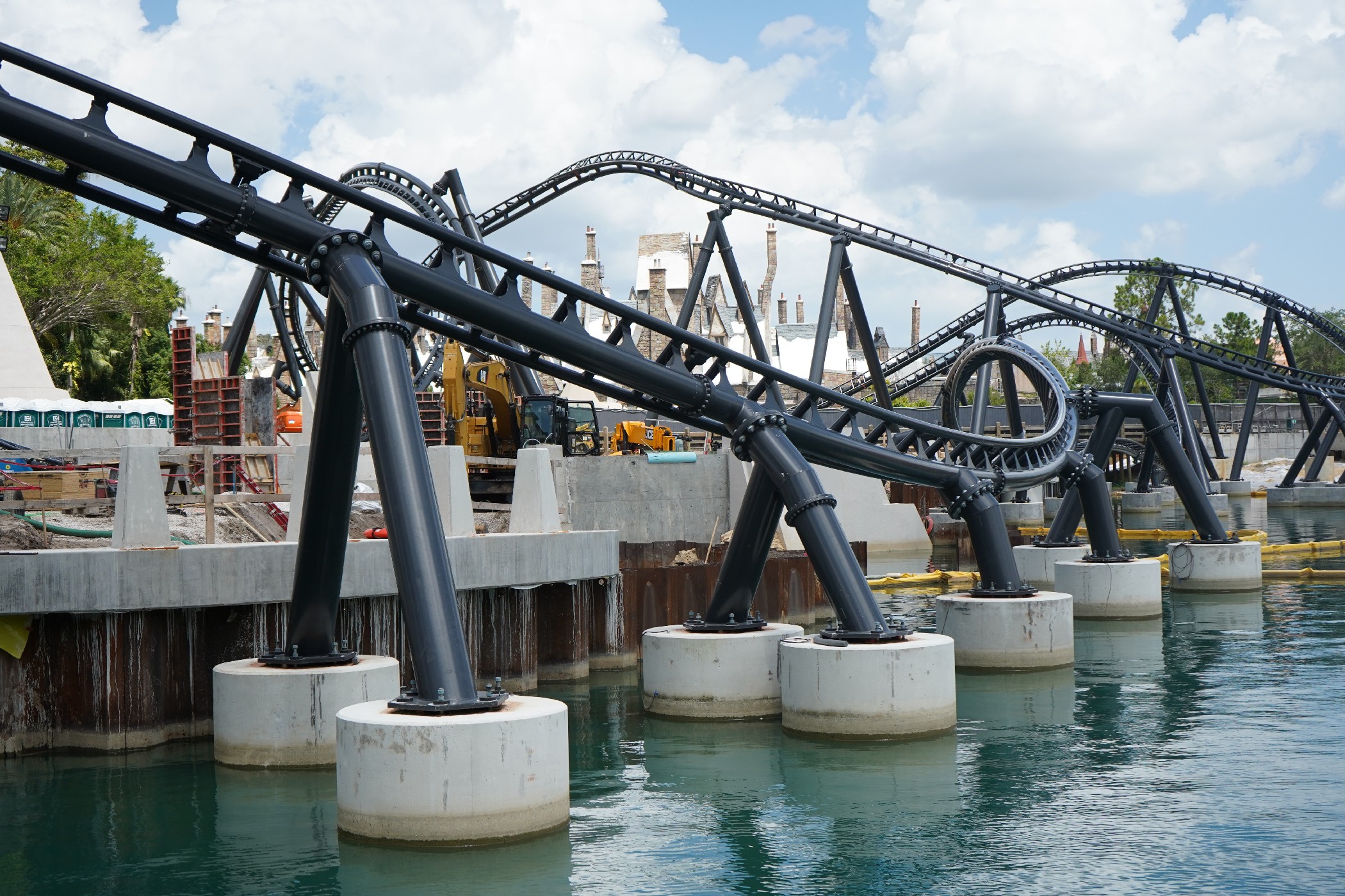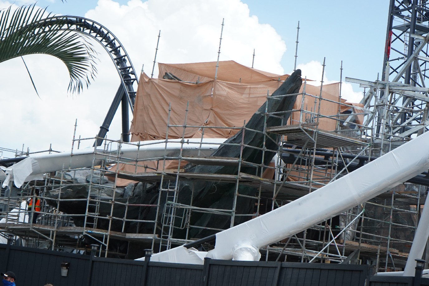 The coaster is looking fantastic! Universal has yet to announce the coaster officially, so we’re still in the dark about specifics. Much of the track has been installed, with just the last bank back into the load station left to install.