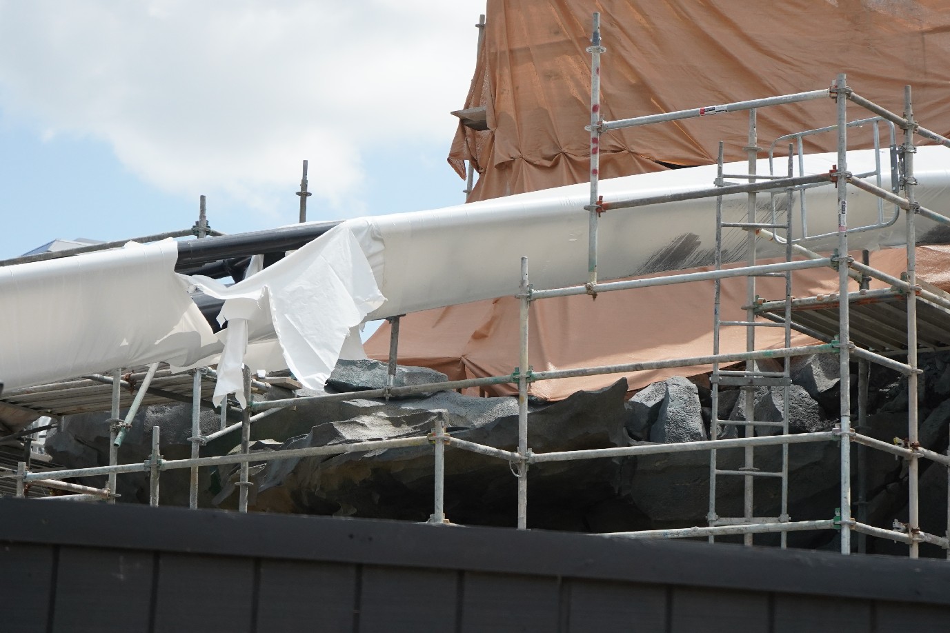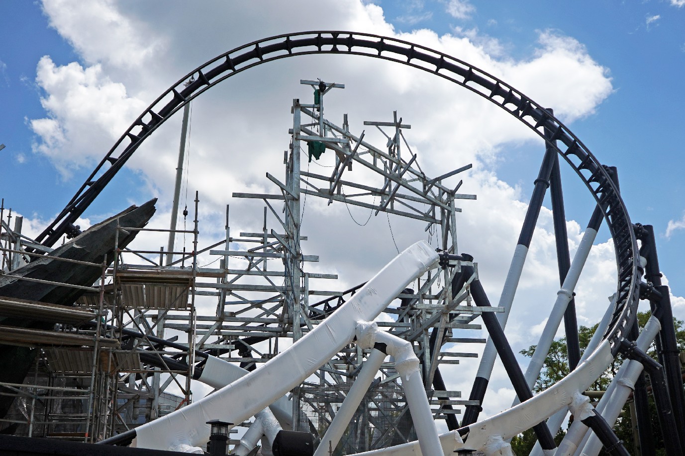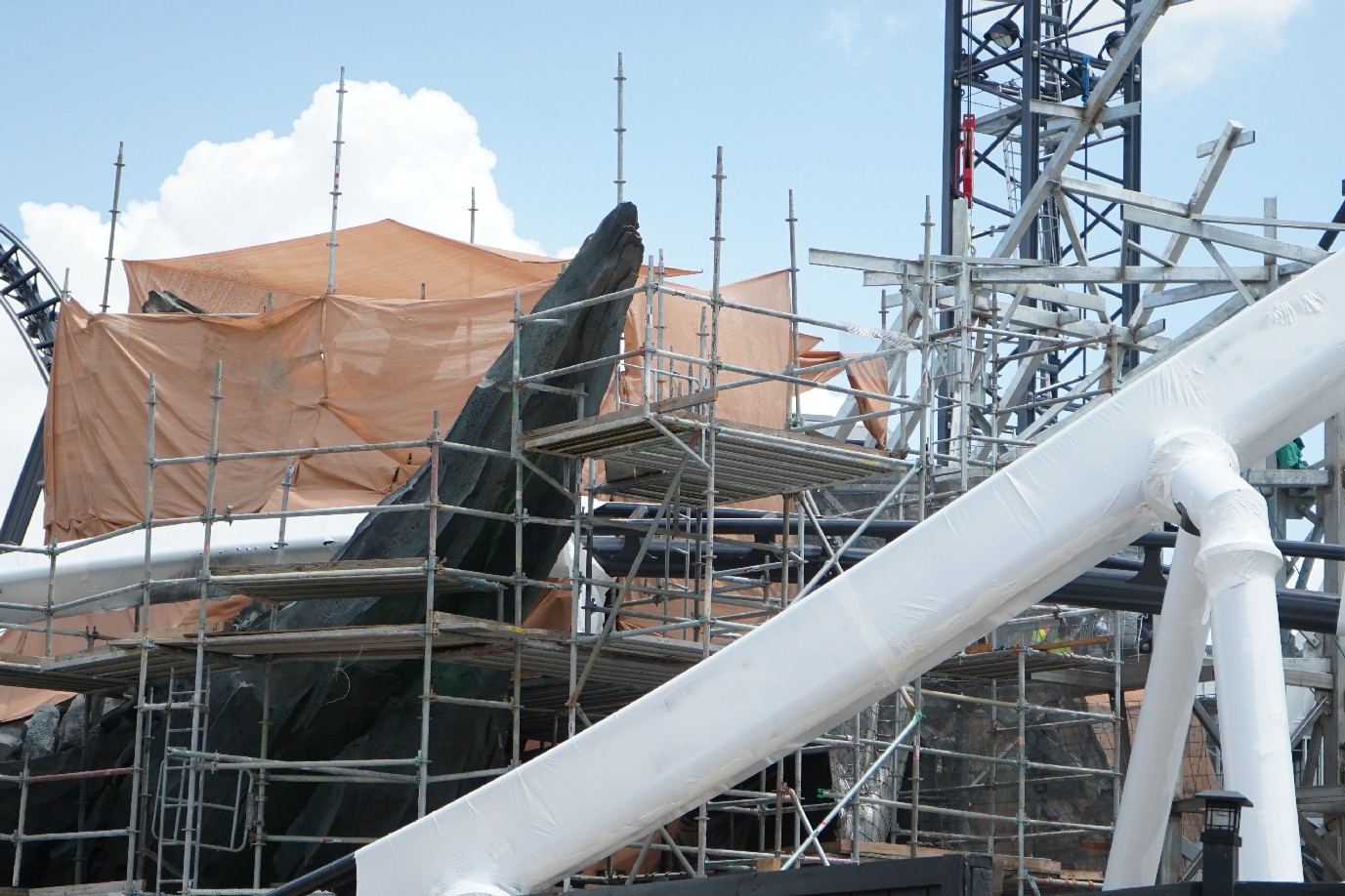 A lot of the focus now has shifted to the thematic rock work around the twists and turns of the coaster track.
