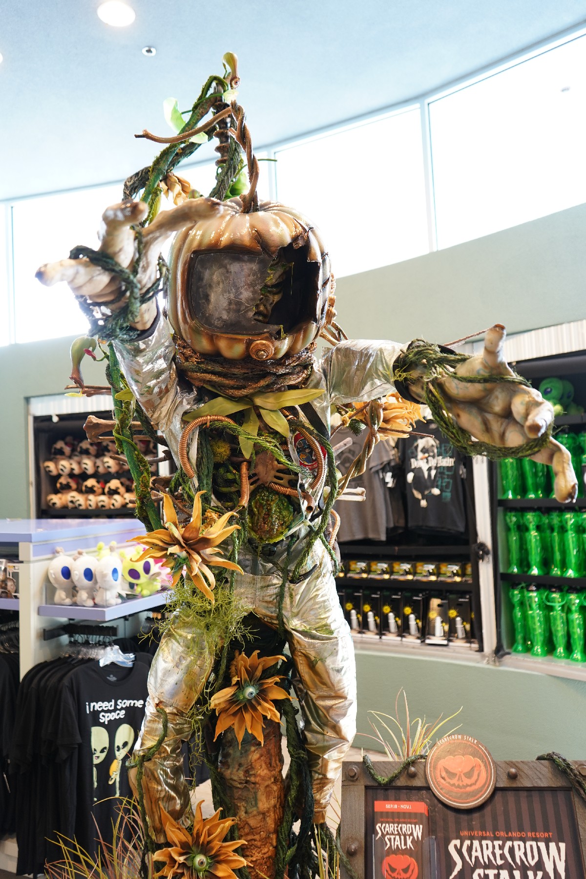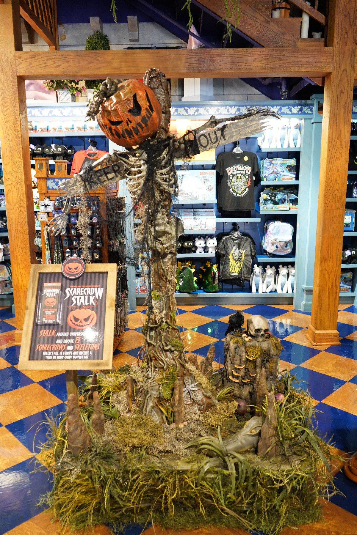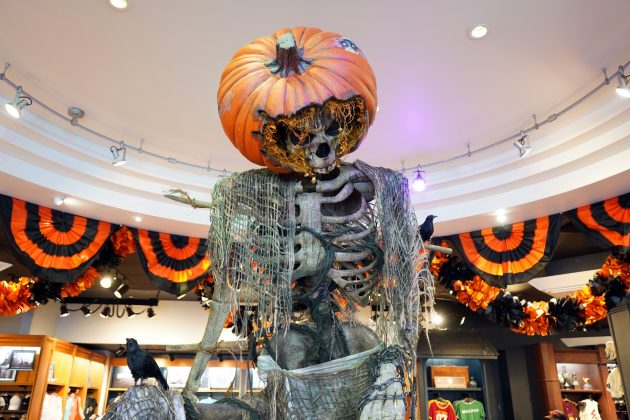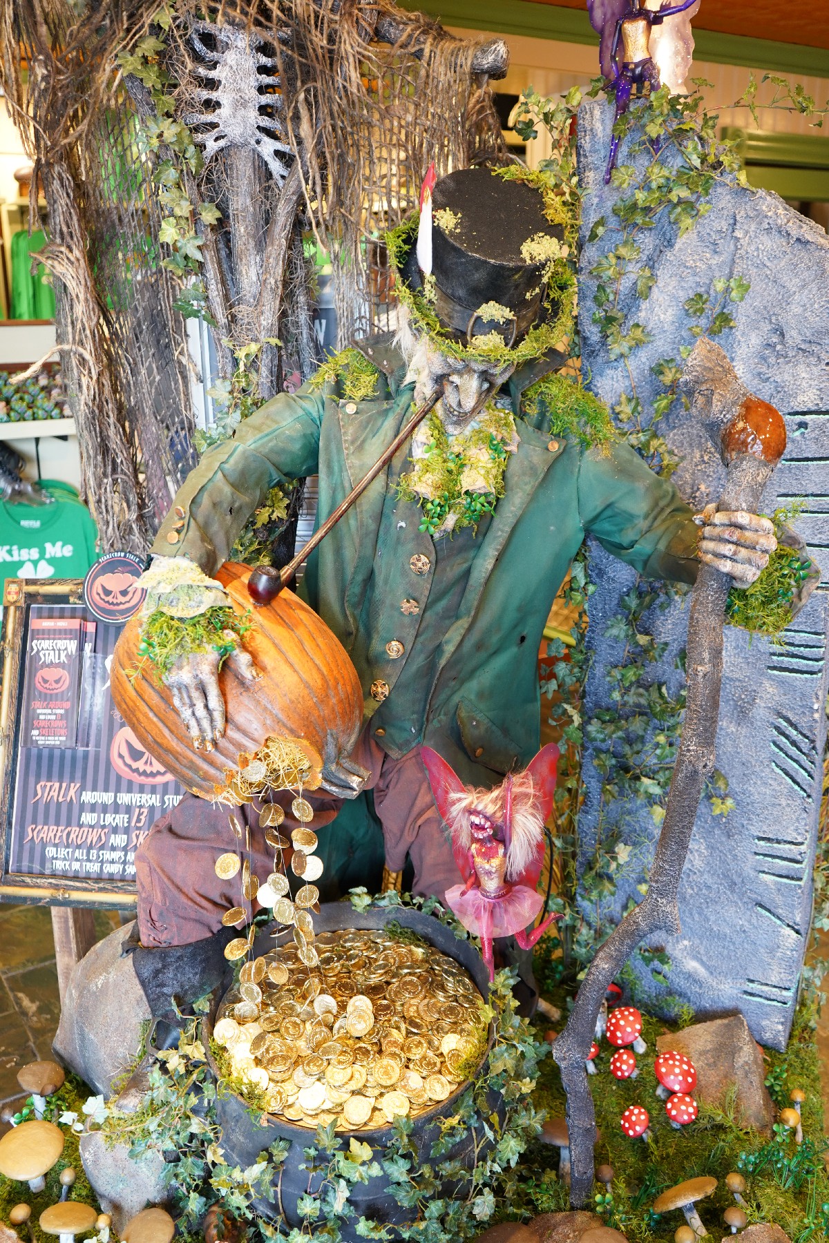 In an effort to cater to younger guests, Universal has set up the Scarecrow Stalk around Universal Studios Florida. Like the Christmas Tree Hunt last year, the Stalk features 13 different scarecrows and skeletons at various locations around the park that guests must locate. After collecting all 13 stamps, guests receive a free trick or treat candy sampler bag and also can get a 30% on bulk candy at San Francisco Candy Factory or Studio Sweets. The figures themselves are pretty impressive, with our favorites being the Leprechaun in the Irish Shop and The Pumpkin Alien in the MIB Gear Shop.