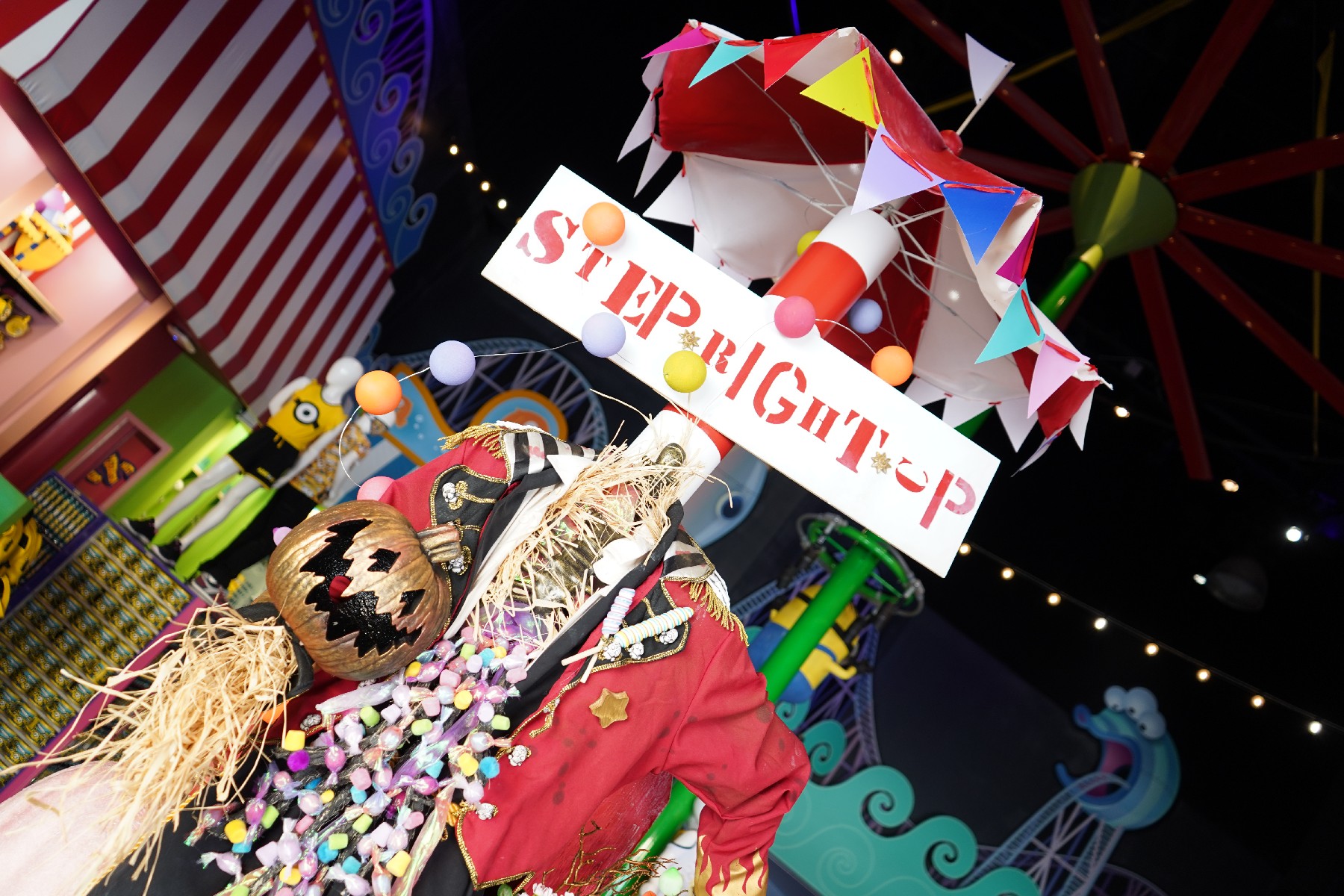 Each location is marked by a pumpkin decal and has different candies to offer, including Nerds, Tootsie Pops, Starburst, and Jolly Rancher.
