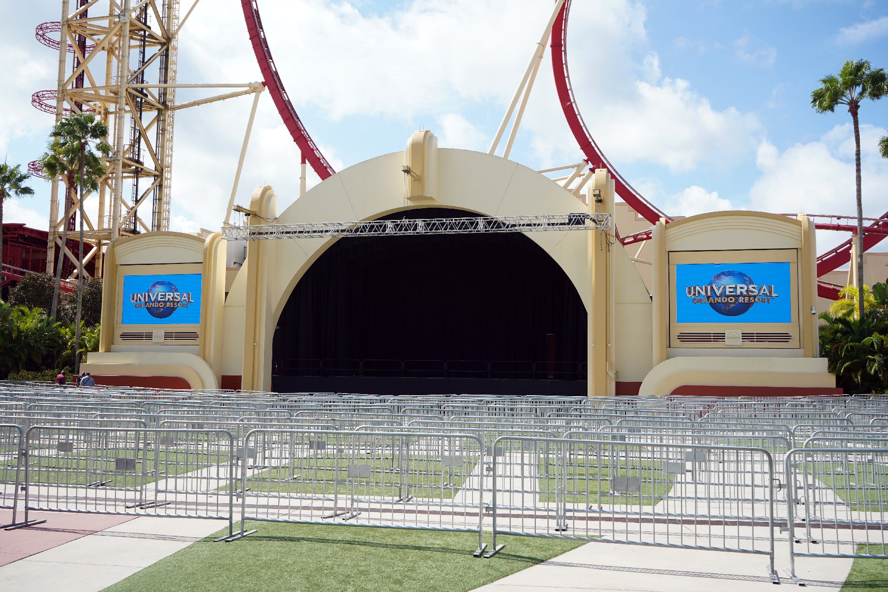 Queue fences have been set up in Music Stage Plaza, which will form the line for Universal Monsters: The Bride of Frankenstein Lives.
