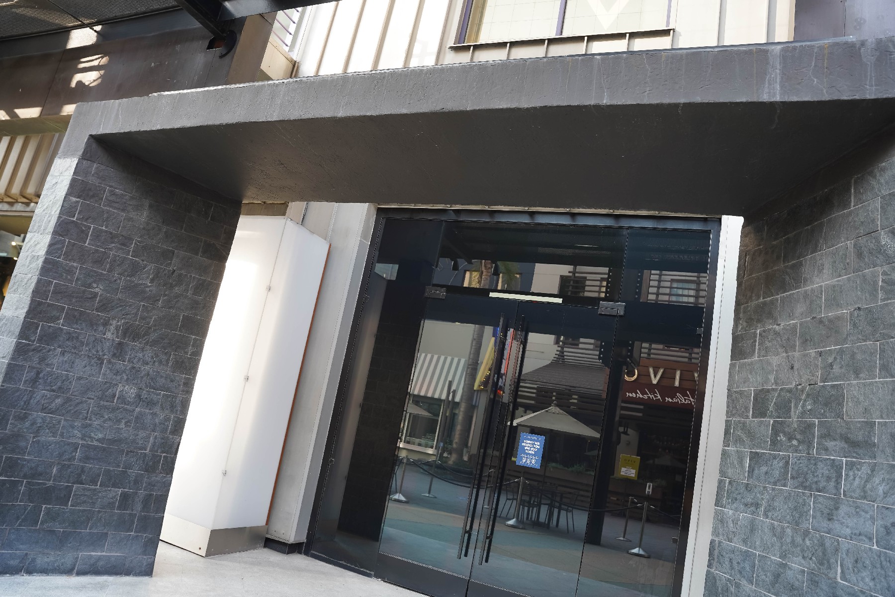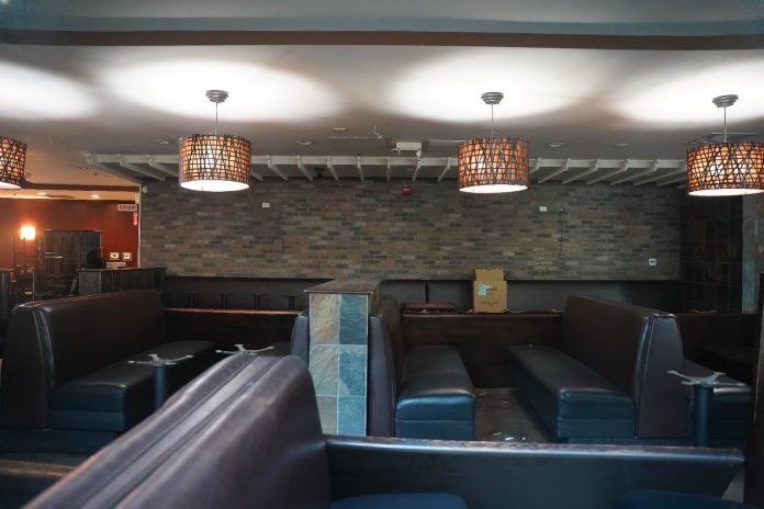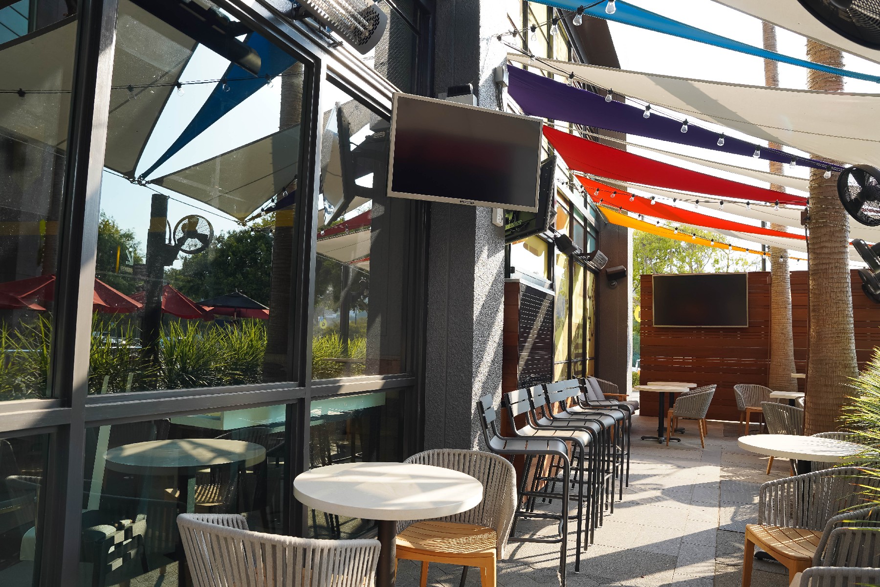 As construction appears to have completed on the new NBC Sports Grill & Brew, the restaurant remains dark on the inside while the big screen on the front of the building continues to play a loop of sports clips. No opening date has been announced as of this update as the location’s front patio continues to be used as overflow seating for Antojitos.