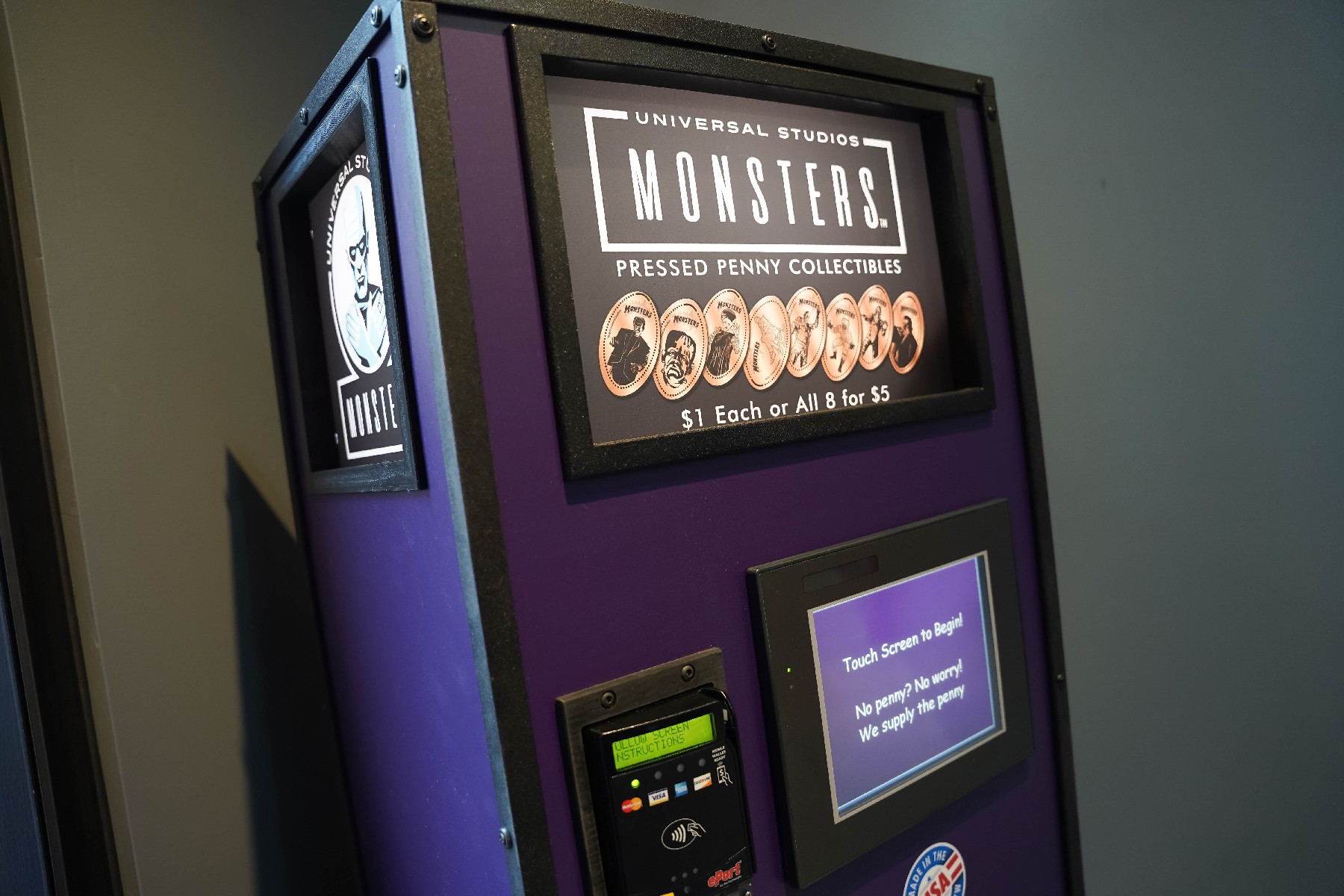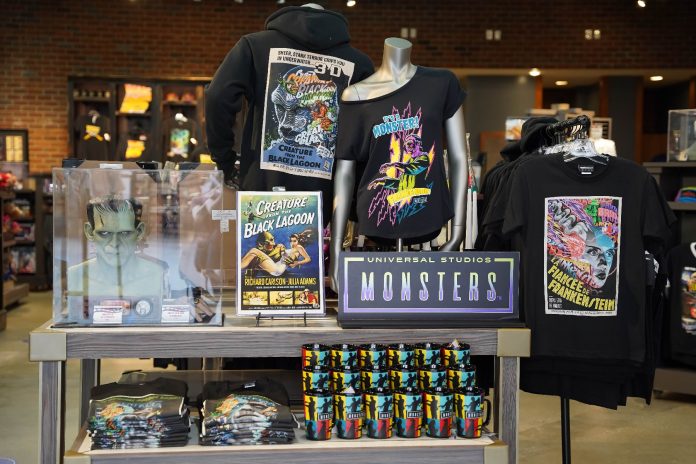 Moving on to Production Central, a new pressed penny machine featuring eight unique designs based on the classic Universal Monsters has arrived just inside the store. Guests can choose to purchase one design for $1.00, or all eight for $5.00. Additionally, the year-round Universal Monsters merchandise – including items featuring the art of Tristan Eaton – has been moved to the front of the store for prominent display.