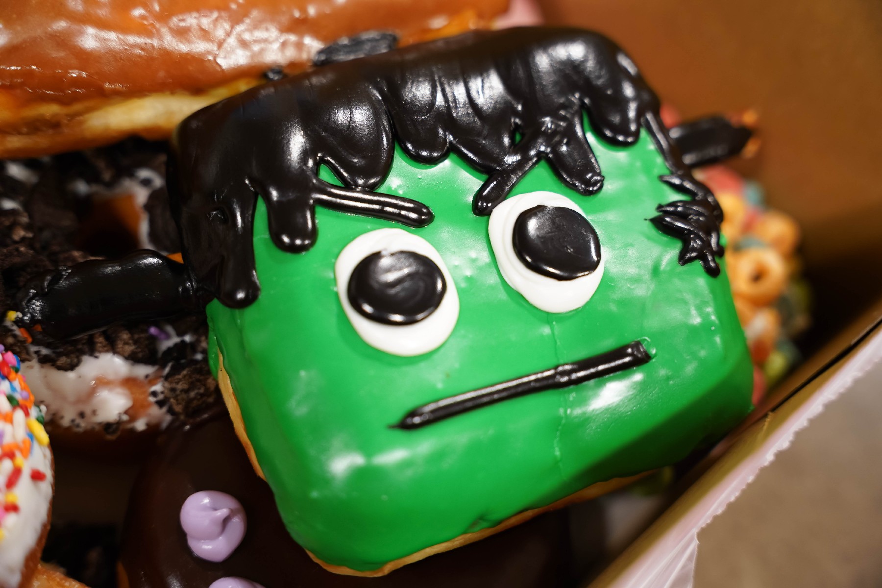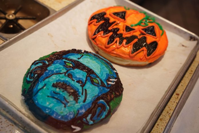 Voodoo Doughnut now releases a new Halloween-themed doughnut each week. During our visit, we tried the doughnut that looks like Frankenstein’s monster, bolts and all. While it was delicious as always, we do wish that it had some kind of filling to combat all the dough.