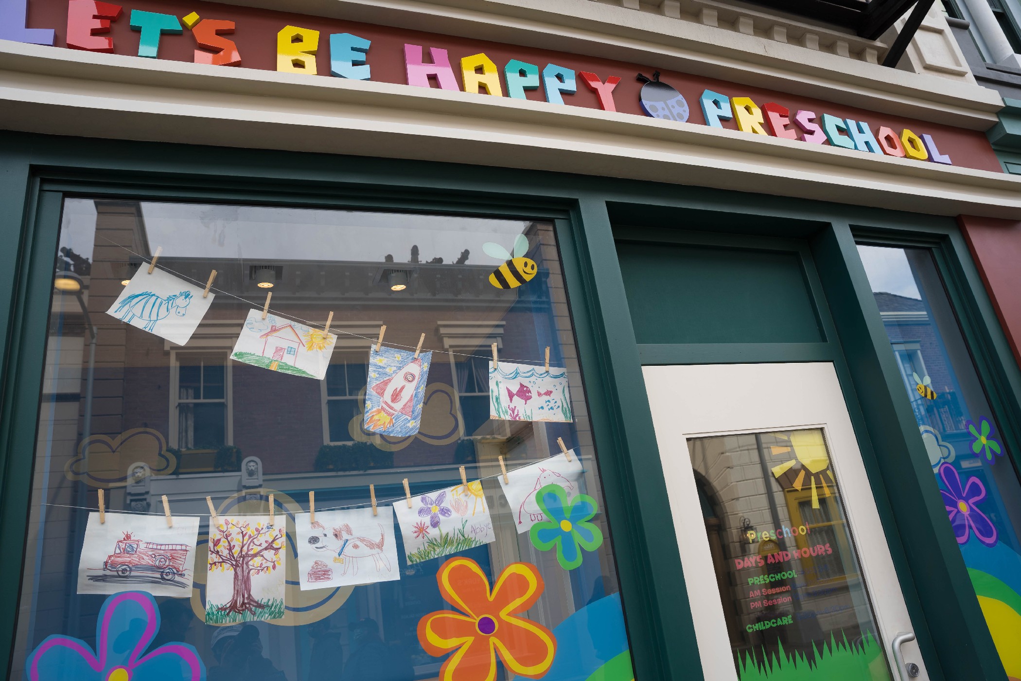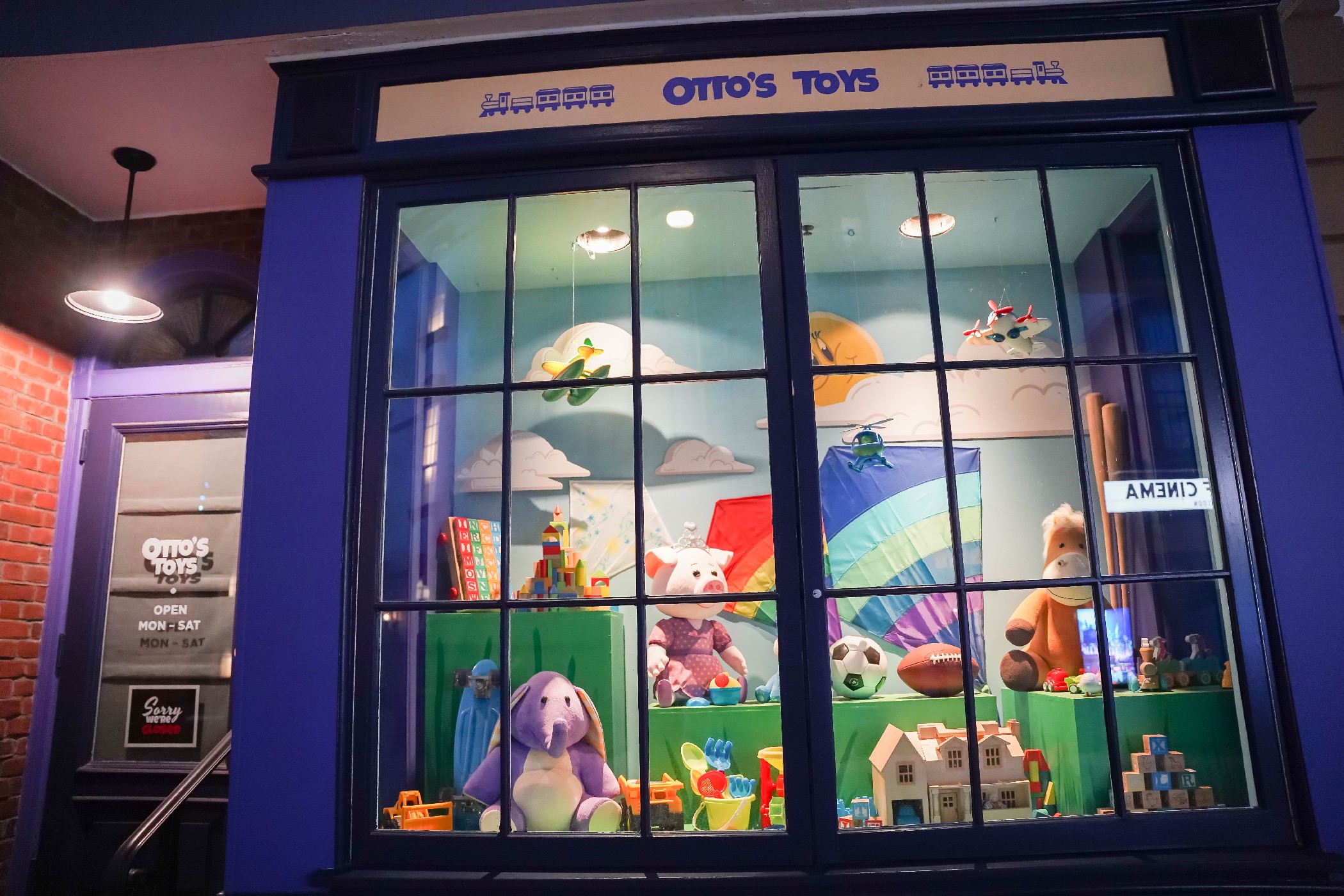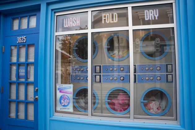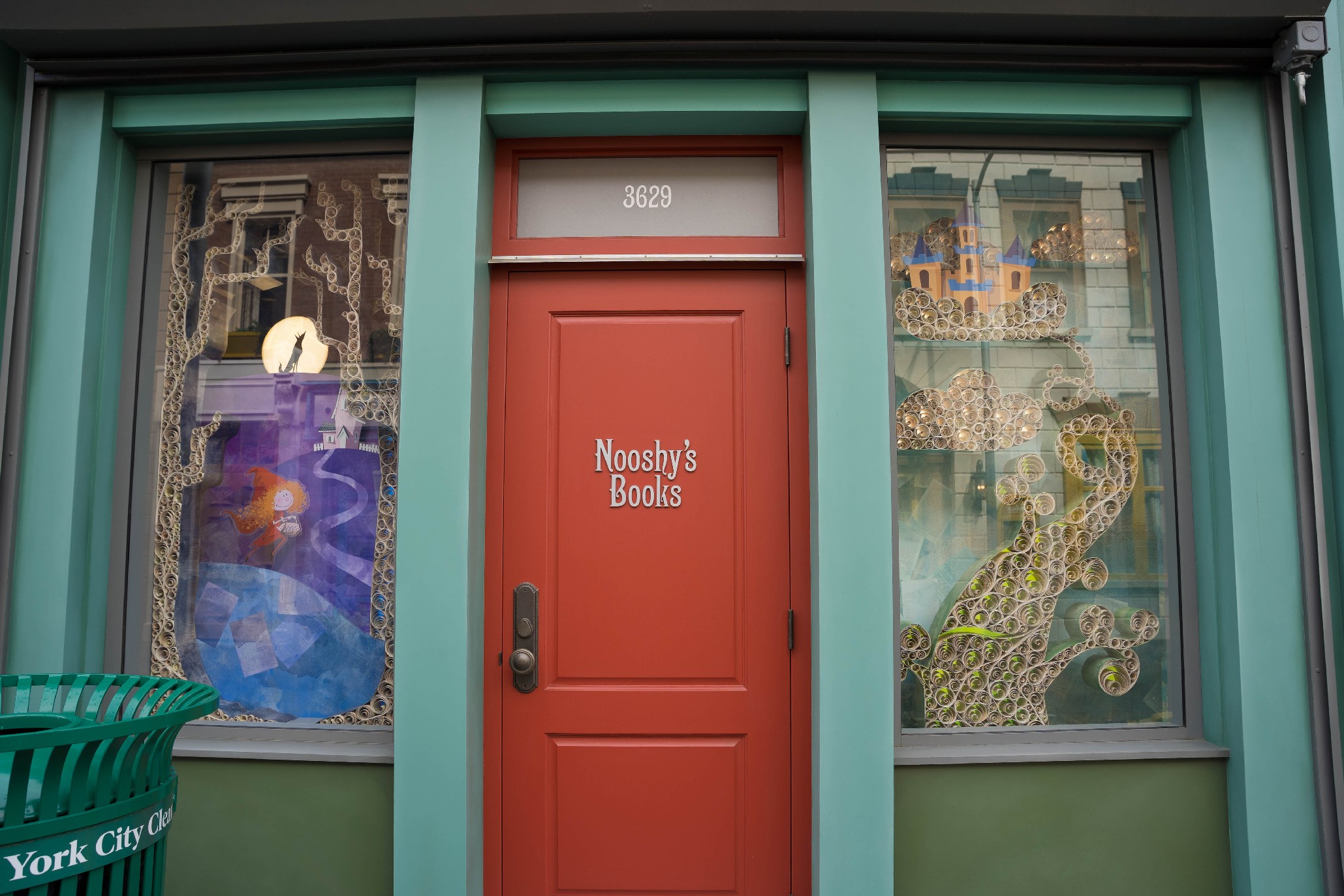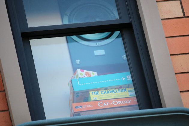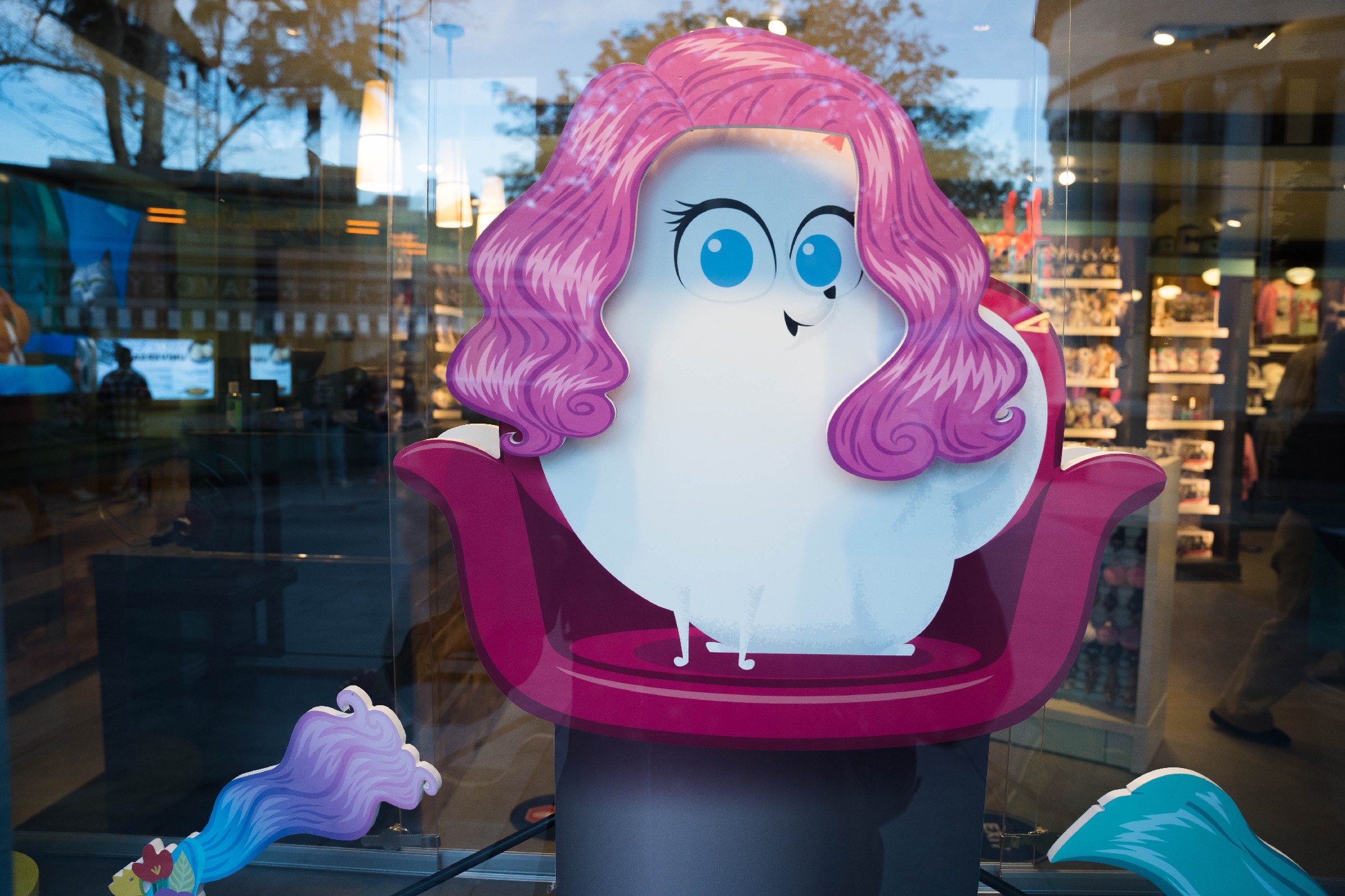 Most other storefronts lining both sides of the street are purely decorative, though certainly add to Pets Place with their many fine details. Magazine covers and advertisements based on the films can be found in the land’s grocery store exterior, including one for The Pets Store itself. Children’s drawings hang on a clothesline above cubbies filled with lunchboxes in the preschool, with Max himself making an appearance in the centermost picture. A laundromat, movie theater, bookstore, newspaper stand, and subway station (where guests will pick up their virtual line tickets) can also be found on the left side of the street along the show building for the ride when one is facing Despicable Me: Minion Mayhem. Up above in the apartment windows are an assortment of regular household items, including lamps, animal-themed board games, and other subtle touches that add life to the street.