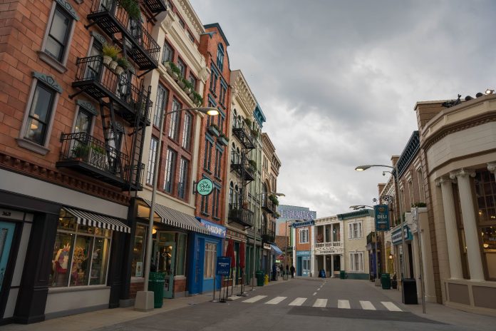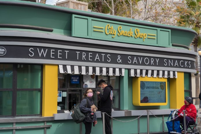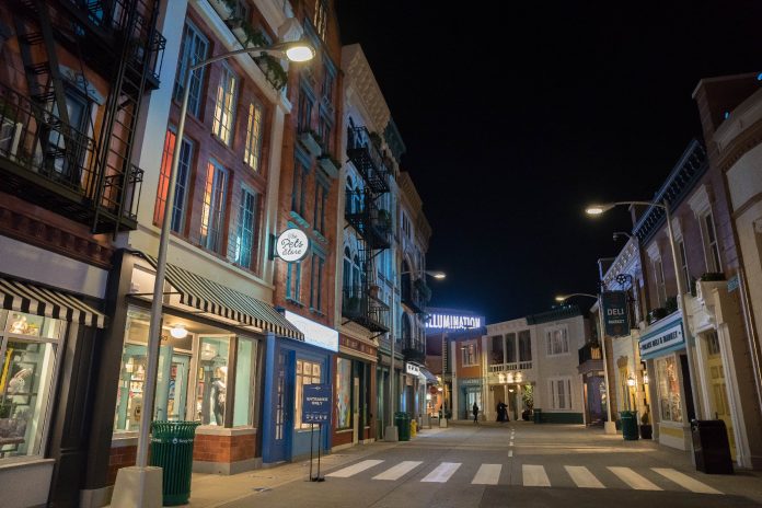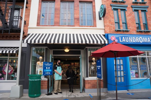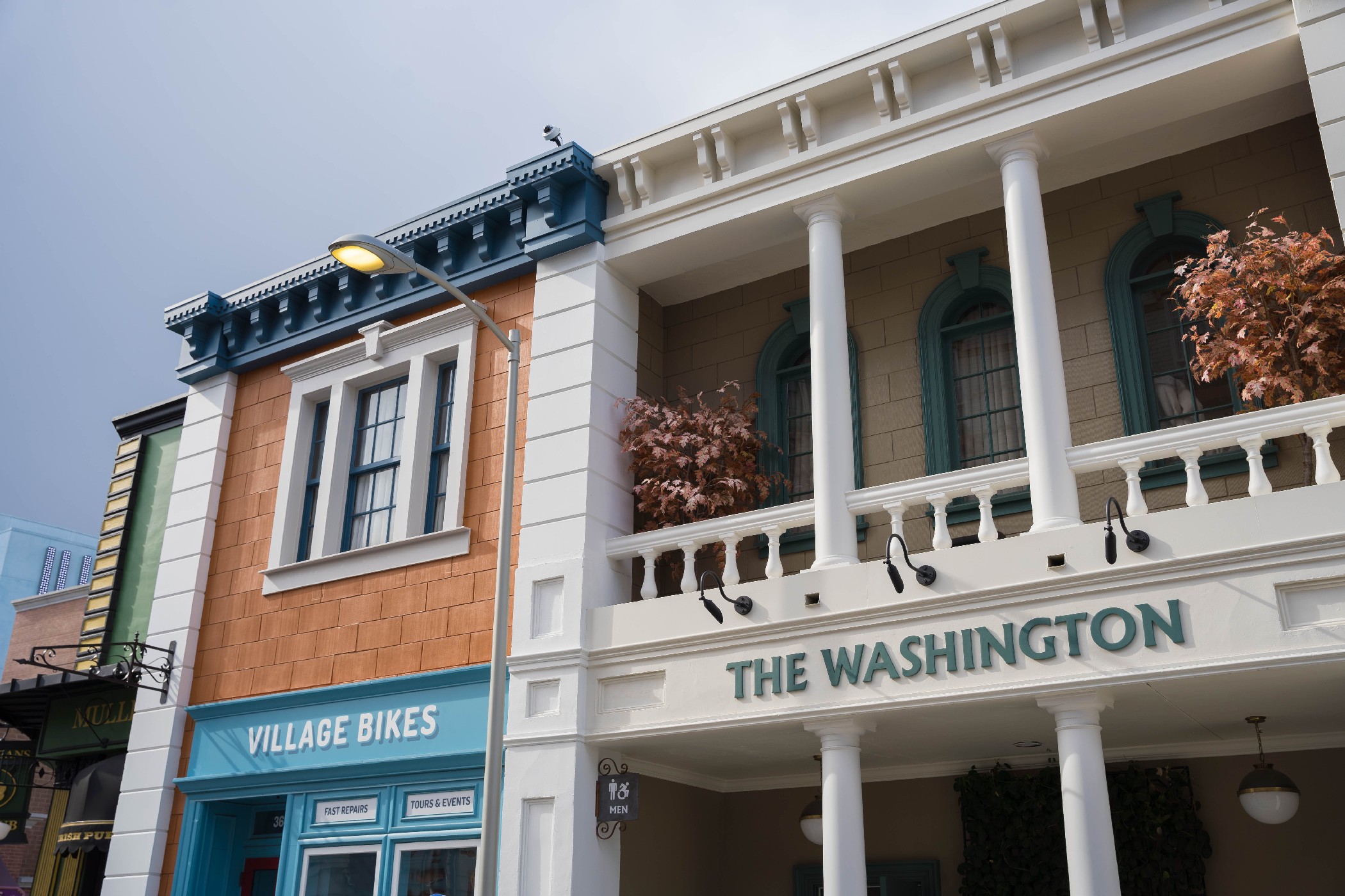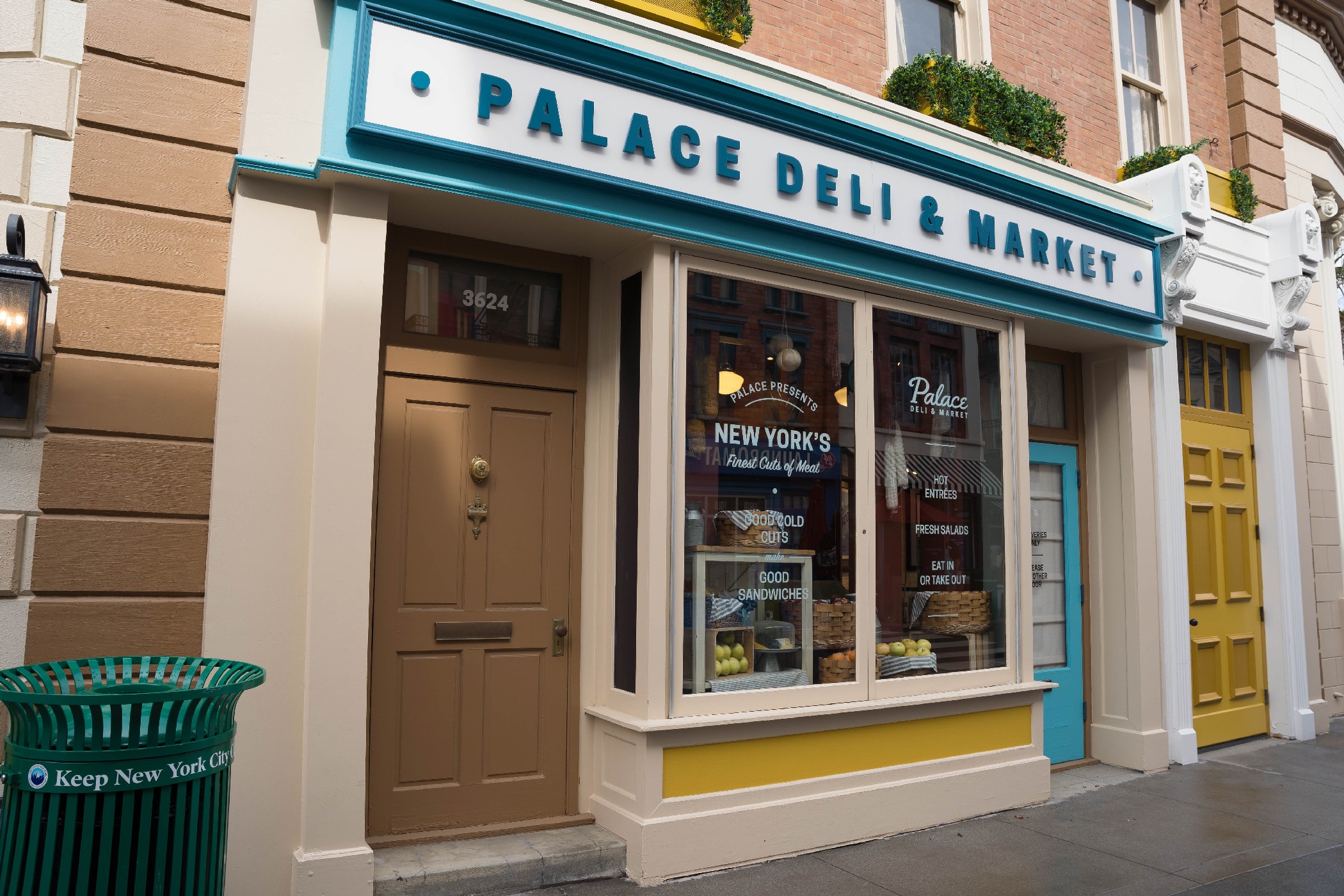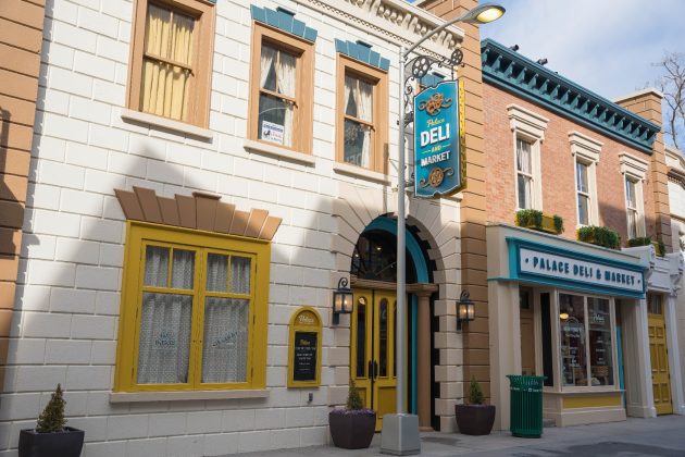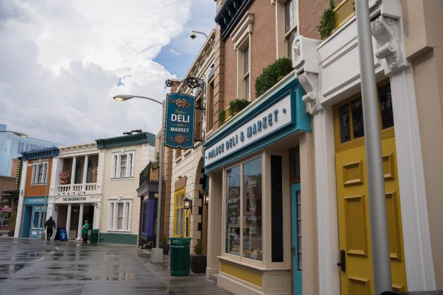 Across the street, there is also a bike store, guest restrooms, a toy shop, and the Palace Deli and Market grab-and-go location. Guests with a keen eye may also notice on the corners of some storefront windows a sticker that says “Protected by Cyberdyne”, in reference to the menacing security company of the same name (Cyberdyne Systems) from The Terminator films, and specifically Terminator 2: 3D – the attraction that formerly occupied the nearby location of Despicable Me: Minion Mayhem.