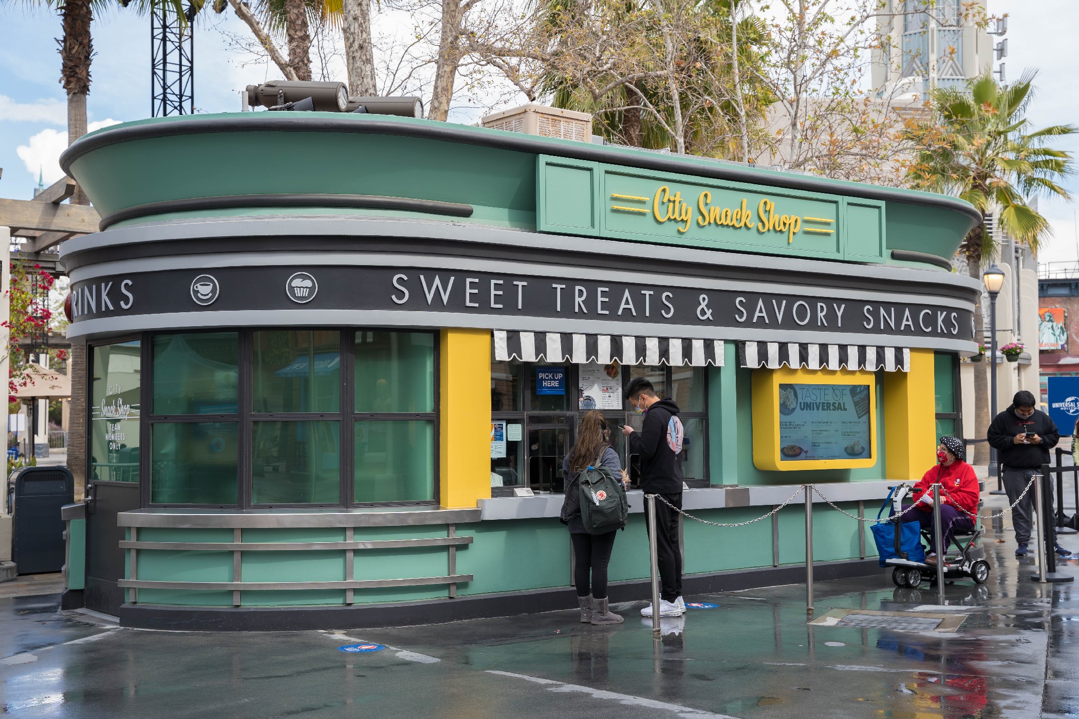 Beyond the ride itself, Pets Place also includes the new City Snack Shop, where it appears that guests will be able to purchase both sweet and savory treats – including crepes and beignets – if the location’s Taste of Universal menu is any indicator of what options it will offer upon full park opening. City Snack Shop has replaced the in-park Cinnabon and received a predominantly green and yellow paint job last year similar to Mulligan’s Irish Pub down the street.