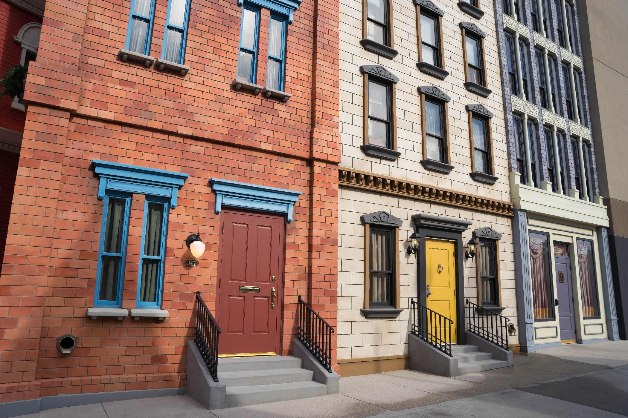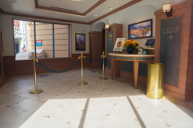 Although The Secret Life of Pets: Off the Leash! has yet to open as attractions at the park remain closed at this time, all walls have come down in the surrounding area, revealing the many details laced within the storefronts lining the street. Just over a year ago, Inside Universal was graciously invited for a hard-hat preview touring the queue of the ride, which begins as guests enter through the doors of the red and green apartment building into the lobby. Since the ride will primarily use a virtual queue system that gives guests a return time to ride, it will not be necessary to wait in an actual line for long, though those who do choose to wait in standby will get the chance to take in the details found within each room of the queue designed to look like the inside of an actual apartment building.