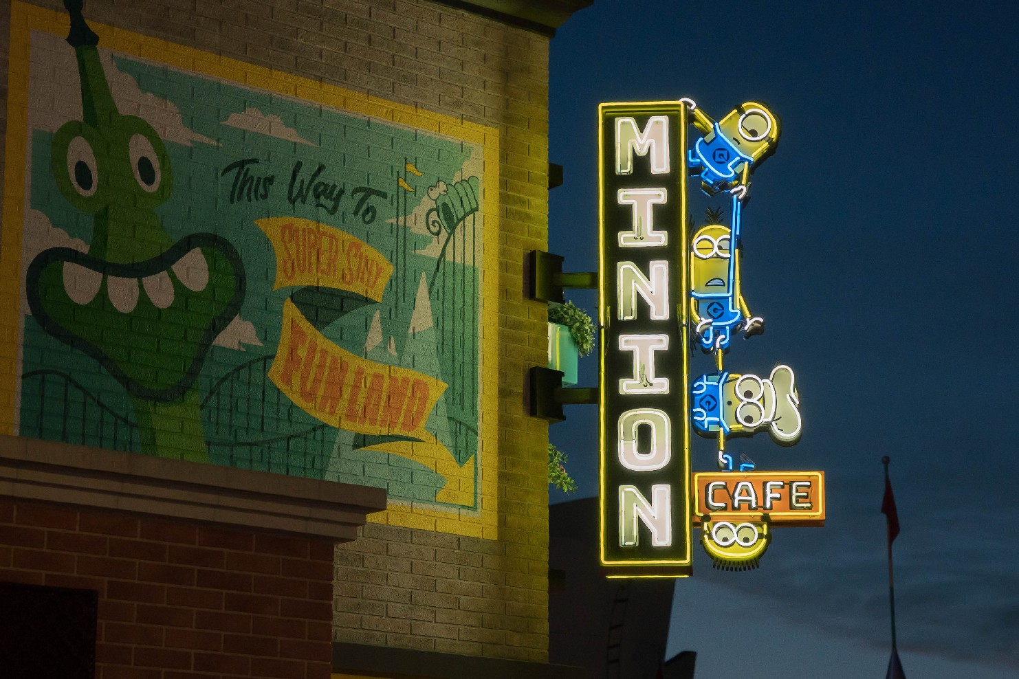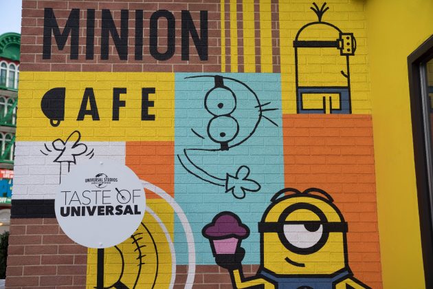Minion Café has officially opened to the public during Universal’s brand-new “Taste of Universal” event. Sporting a vibrant, retro-style brick exterior with cute murals based on the beloved characters and locations from the source films painted all around, the restaurant brings a new element of life to the Super Silly Fun Land area of the park.