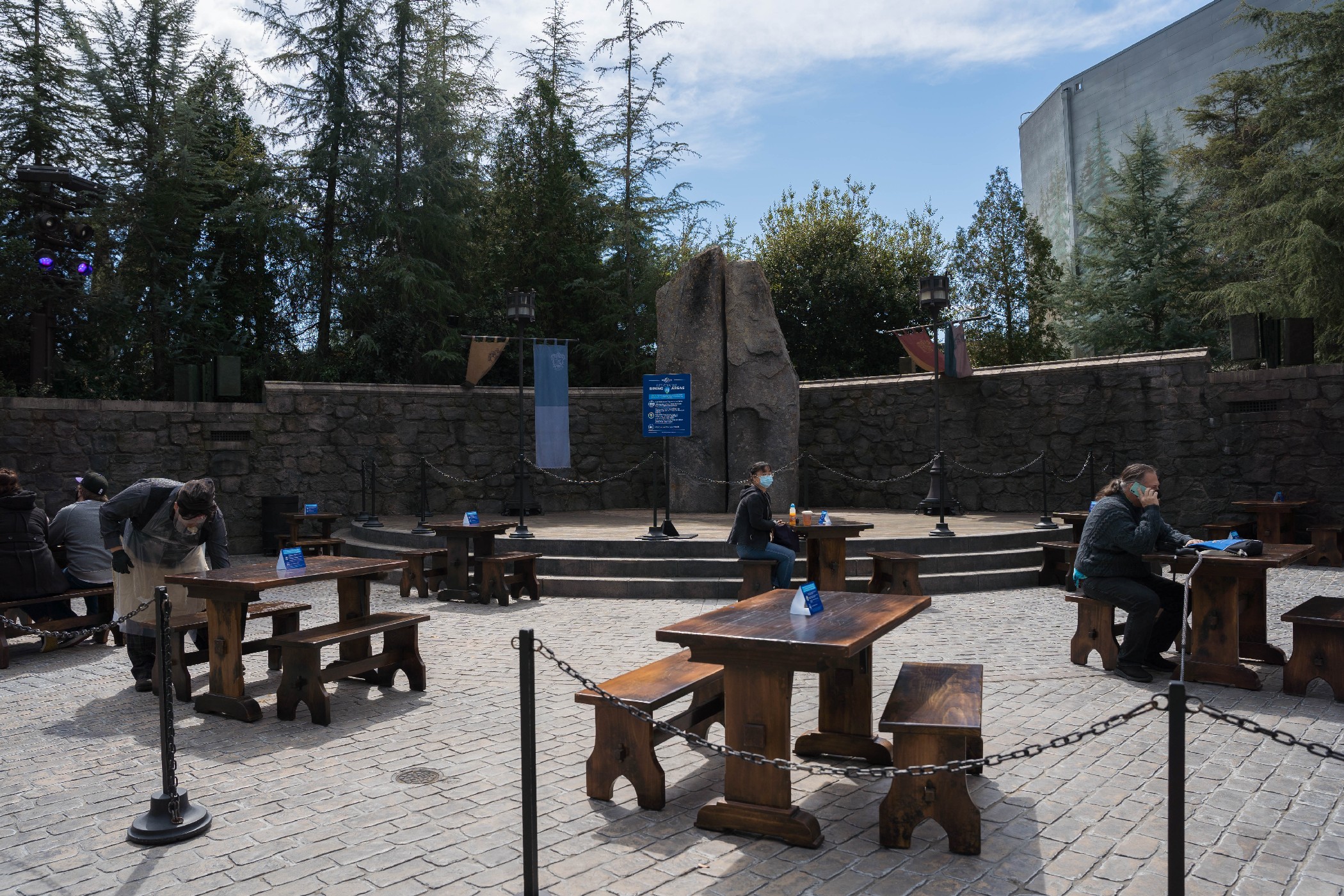 Outdoor seating can be found all across the Upper Lot in locations including the currently Fast & Furious-themed Universal Plaza, the area in front of the performance stage in the Wizarding World of Harry Potter, and the entrance to The Simpsons Ride, to name a few. Most outdoor seating areas used during regular park hours in the past are also being used for the event now to meet attendance needs, with the exception of those found on the Lower Lot.