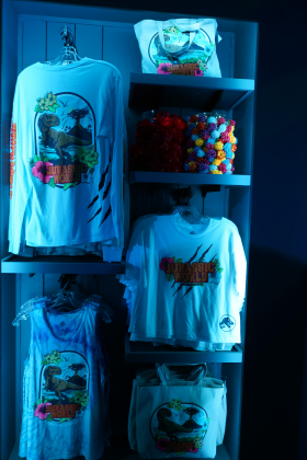 - Raptor Paddock: Those brave enough to enter the Raptor paddock may see a member of the Raptor pack as they shop the new “Into the Wild” and “Tropical” merchandise lines. “Into the Wild” features dinosaur-themed, neutral-colored items like spirit jerseys, socks and key chains, while the “Tropical” line features trendy tie-dye hoodies, beach hats and bright summer-colored items.