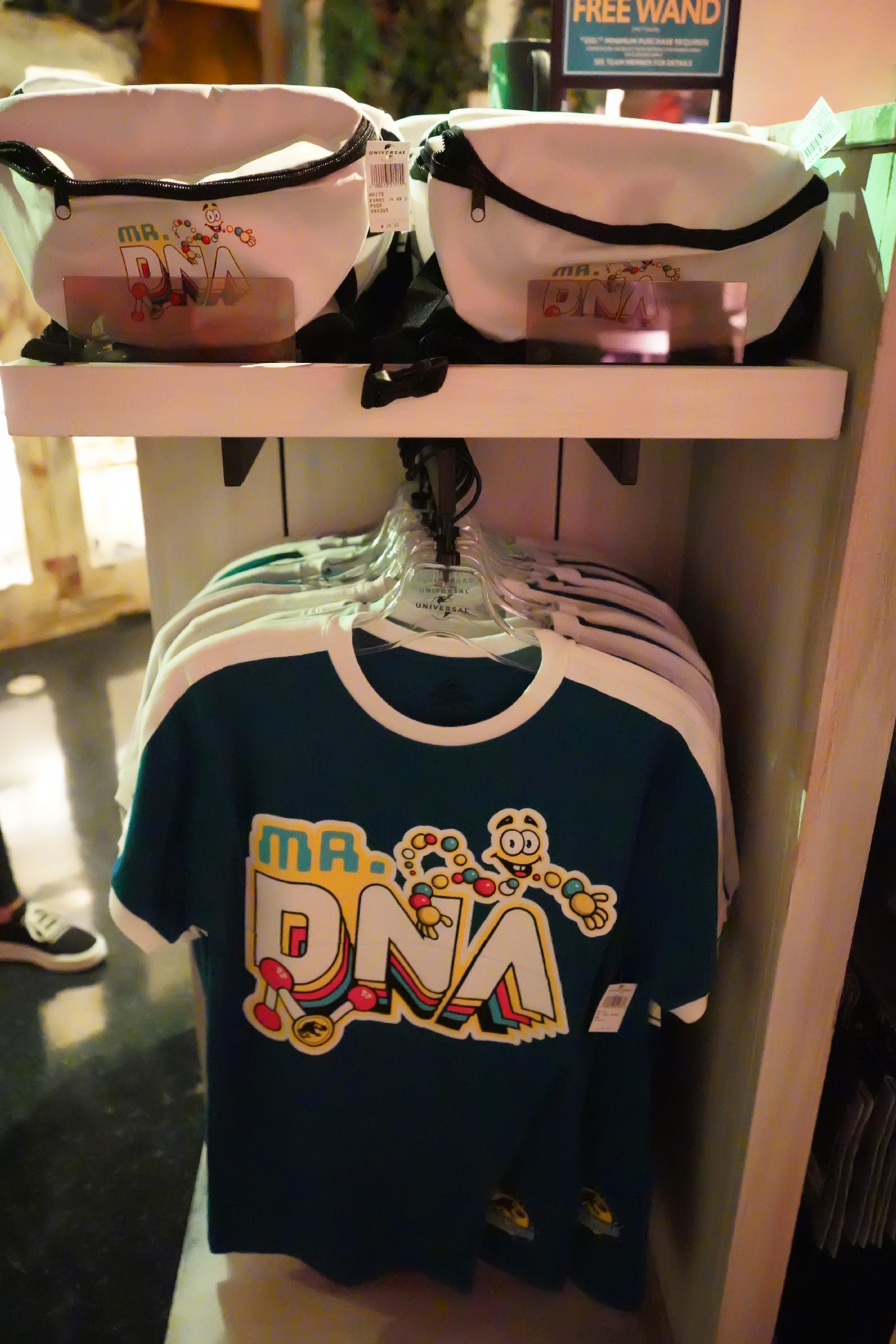- Lab: See where dinosaurs were created and get a behind-the-scenes look at rare, authentic props that were used in the original “Jurassic Park” films. Here, fans can check-out the new Mr. DNA merchandise that includes stickers and tumblers.