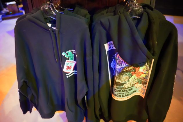 The store features environments inspired by Dracula, Wolfman, Mummy, Phantom of the Opera, Frankenstein’s Monster, and The Bride of Frankenstein. Guests can check out a variety of Universal Monsters-dedicated merchandise, pose with life-sized photo ops, and even “monster-ize” themselves as caricature artists “stitch” them together with the likeness of their favorite creature.