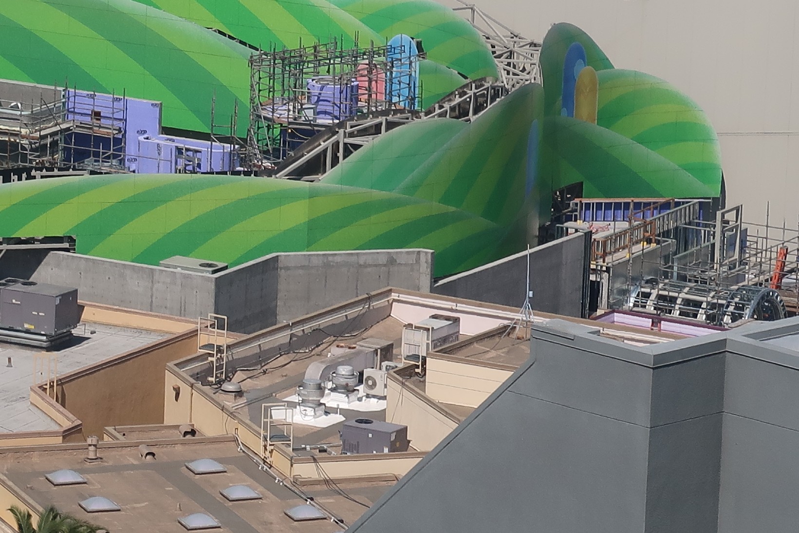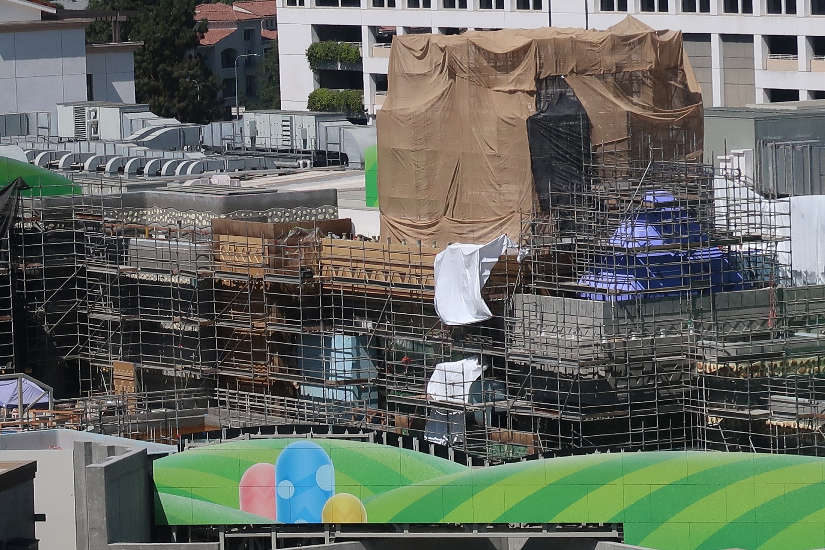 Progress on Super Nintendo World is starting to become more prominent as theme elements have begun to be installed inside the land, including around Bowser’s Castle.