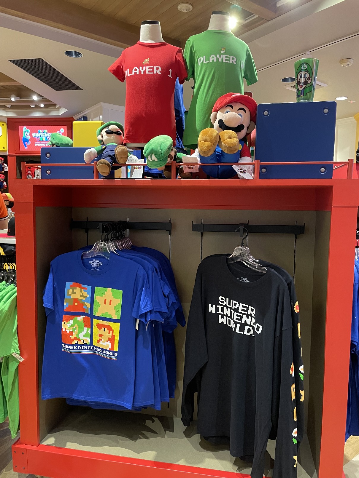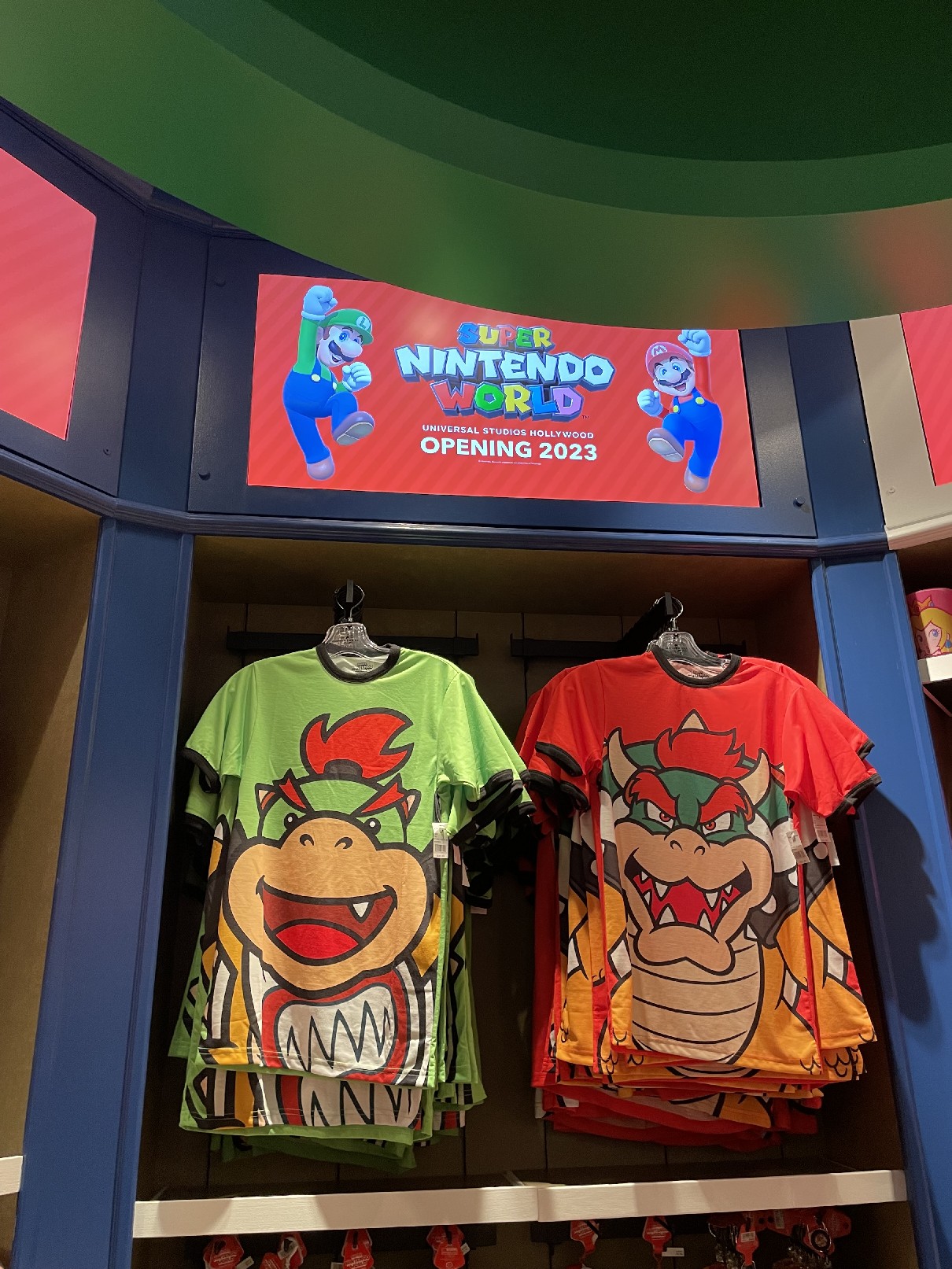 Located in the Upper Lot, guests will have a chance to purchase Mario and Luigi-themed apparel, as well as their iconic character hats. A selection of plush characters, including Yoshi, Mario Bowser, and Luigi in a variety of sizes, will also be among the many fun items available for purchase.