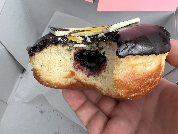 As far as our thoughts, it’s a good doughnut (I mean, it is a doughnut after all). The blueberry wasn’t overpowering, so non-fruit-filled doughnut fans who are timid to try it may want to give it a go. With that said, it doesn’t come close to topping last summer’s Jurassic Churro Donut.