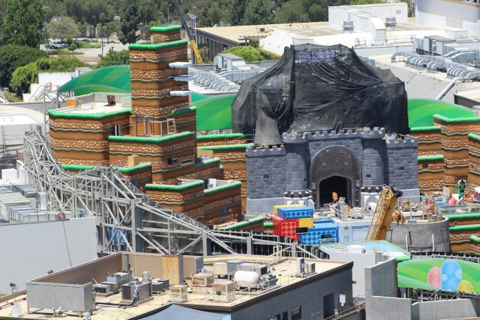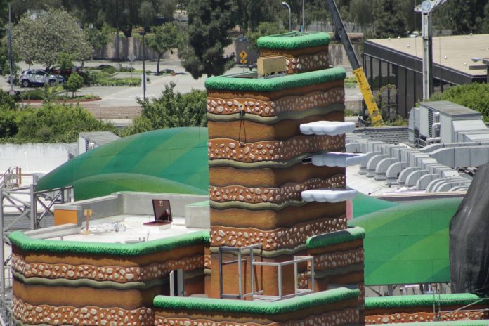 Set to open in early 2023, Super Nintendo World has made a lot of visible changes since the last photo update. A majority of Bowser’s Castle seems to be completed and many of the scaffolding surrounding the structures have been taken down. Piranha plants wrapped in plastic along with colorful blocks can be seen throughout the land.
