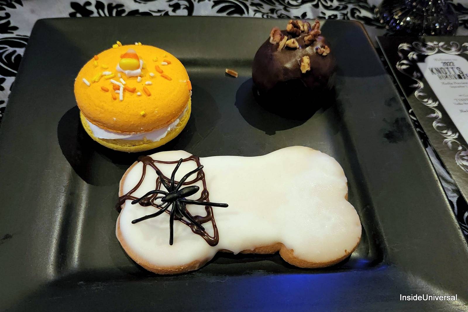 Finally came deserts. The macaron was far far richer than I expected. There’s no shame in trying to share it. The skeleton bone cookie and pecan pie brownie bomb were much less