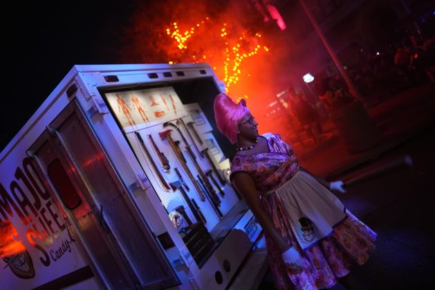 The New York curse has been broken! After years of having the biggest scare zone location feel empty, Sweet Revenge fills out New York with parade floats, lights, and a whole bunch of killer children. The vintage costumes are great, and the actors definitely seem like they are having a damn fun time in their roles. Special shoutout to the people who play Major Sweets, Miss Treats, and the seniors escaping the murderous youth.