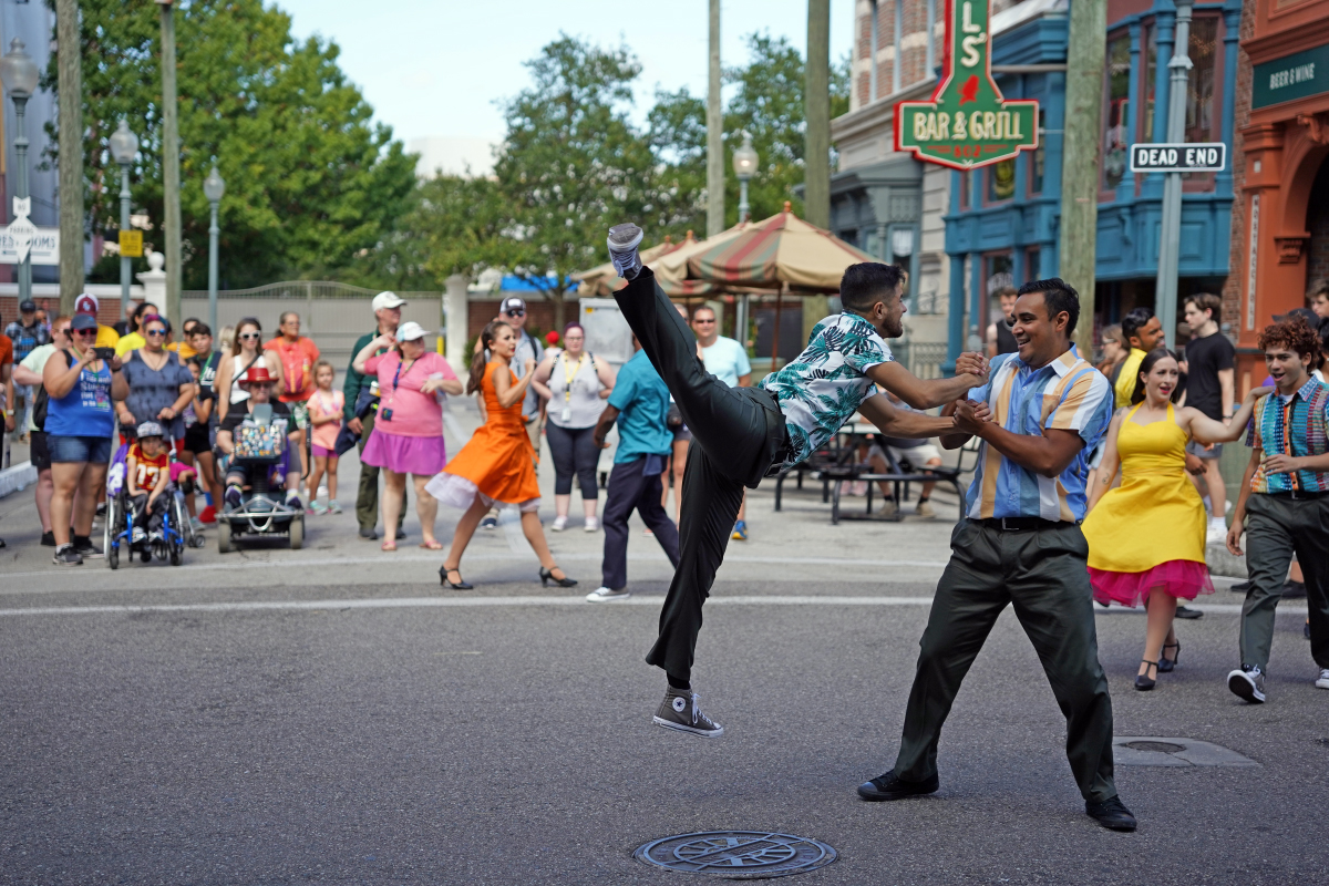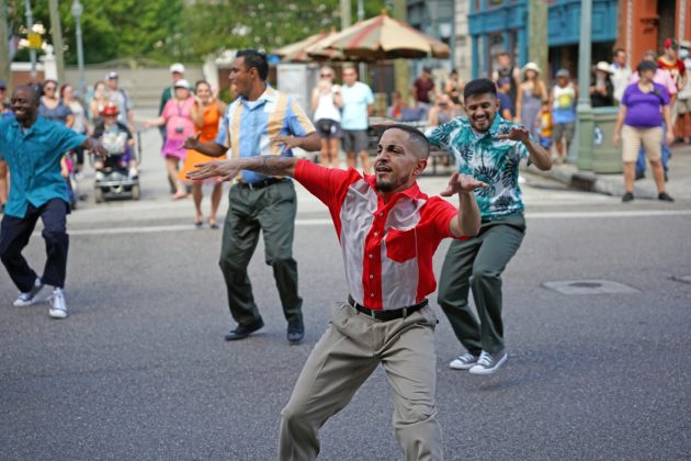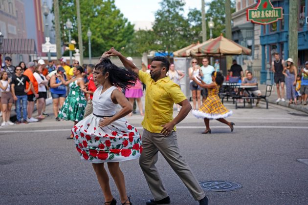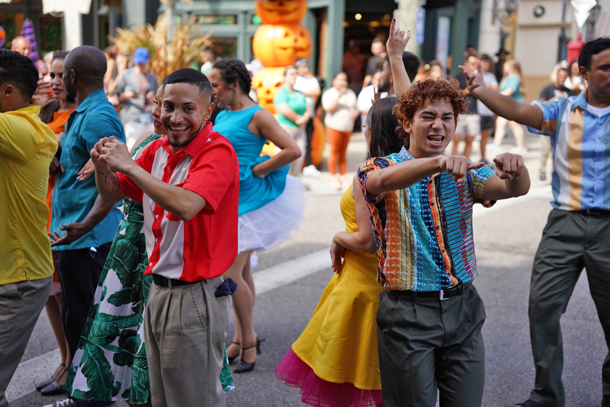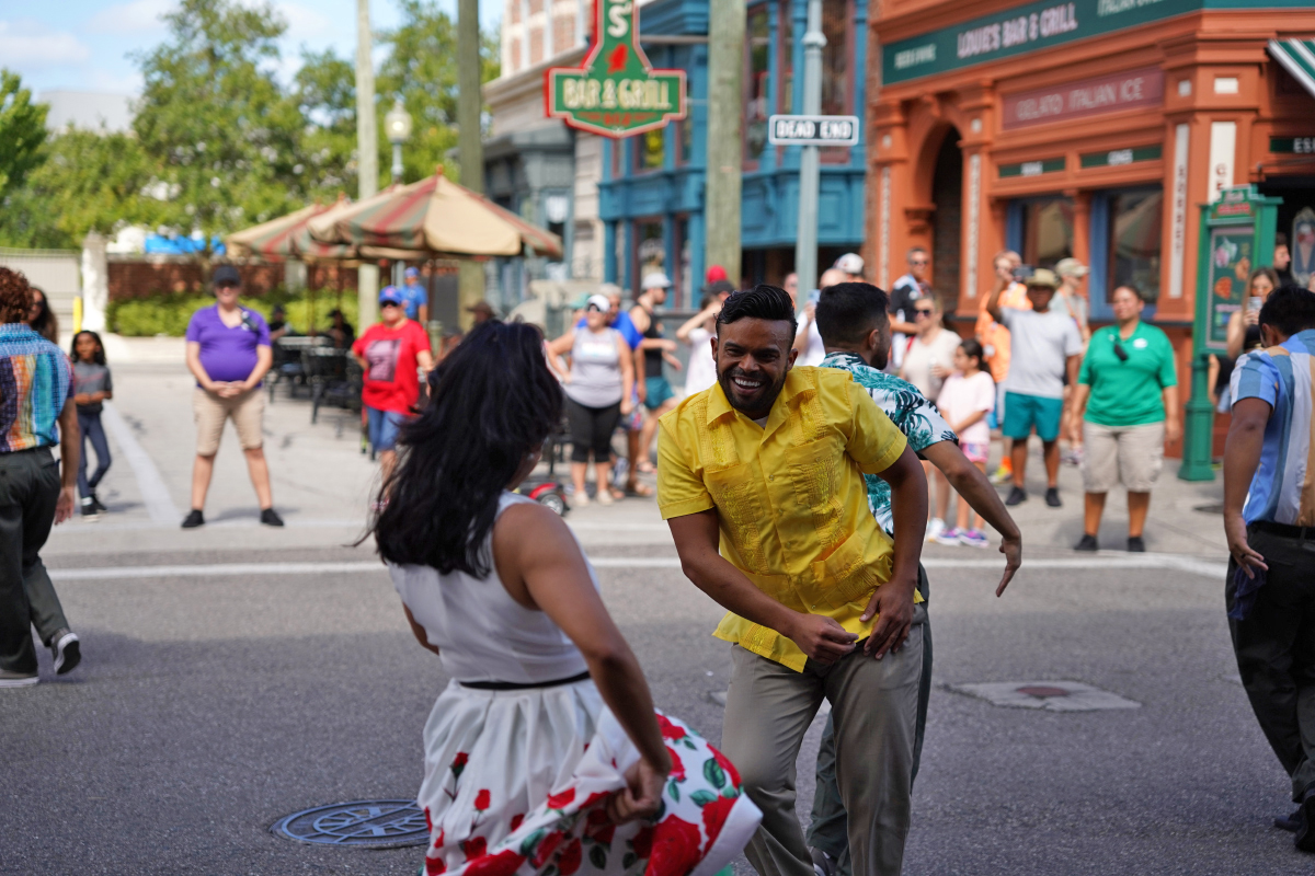 The show debuts just in time for Hispanic Heritage Month, and will continue beyond per Universal. The show’s title translates in English roughly to “Let’s Go and Dance”. The high-energy Latin dance experience features a classic look and modern musical flair as a dozen dancers take to the streets for an energetic 12-minute performance, and is very reminiscent of “In the Heights” with a little “West Side Story” style.