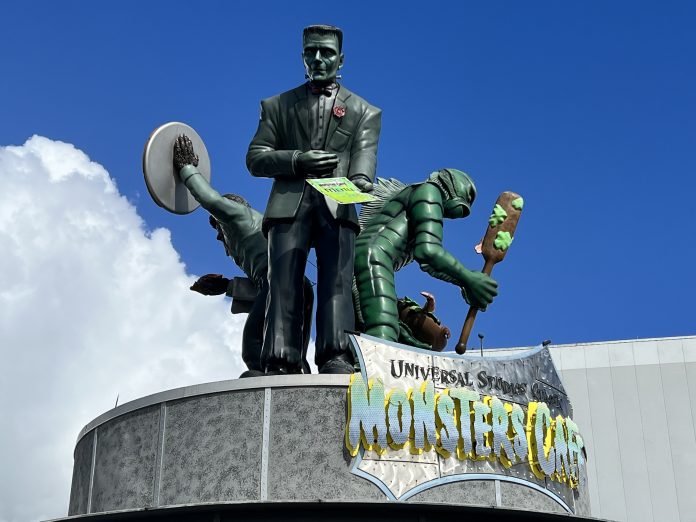 The stand served standard snacks and soft drinks but was noted for featuring 3 large statues from Universal’s Classic Monster films – Gillman aka the Creature from the Black Lagoon, The Wolfman, and Frankenstein’s Monster.