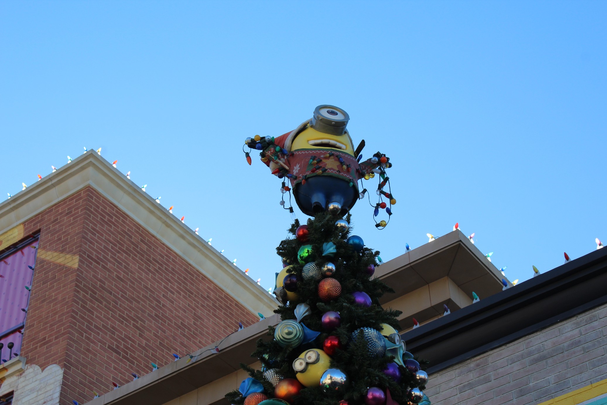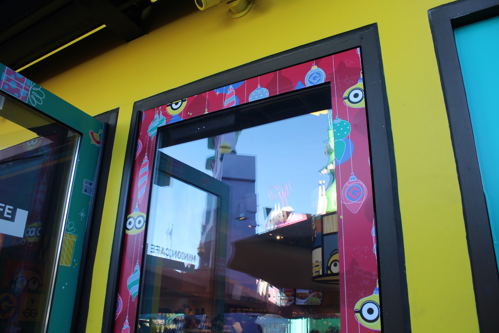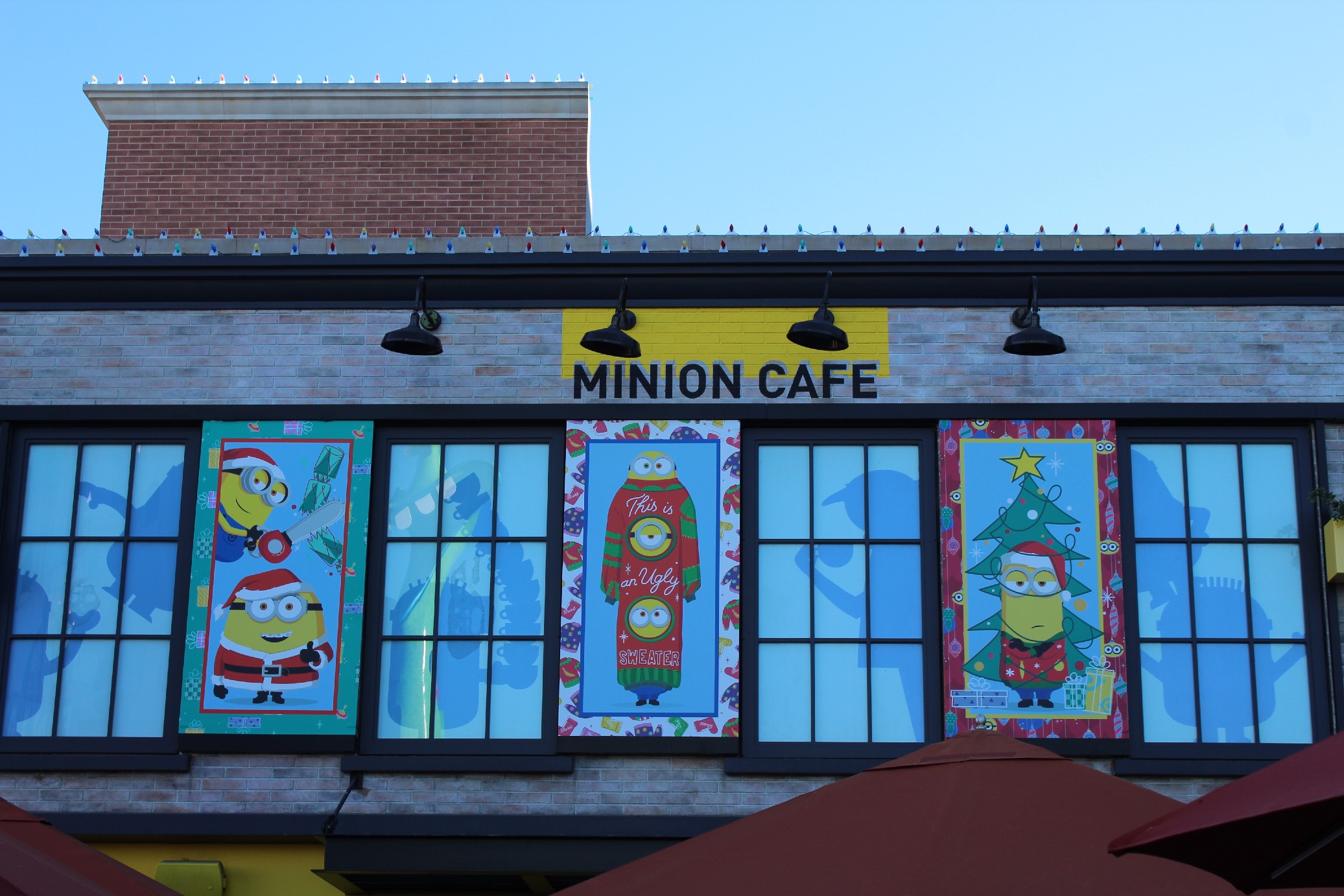 The Minions are all ready for the Holidays! The Christmas tree with the Minion baubles is back next to the Minion Cafe and the tree topper is definitely one of a kind! Our favorite Minions can be seen on posters along the walls of the cafe, causing perhaps a bit of mayhem. The collectible Holiday Minion popcorn bucket is also back for $28.99 and can be found all throughout the park.
