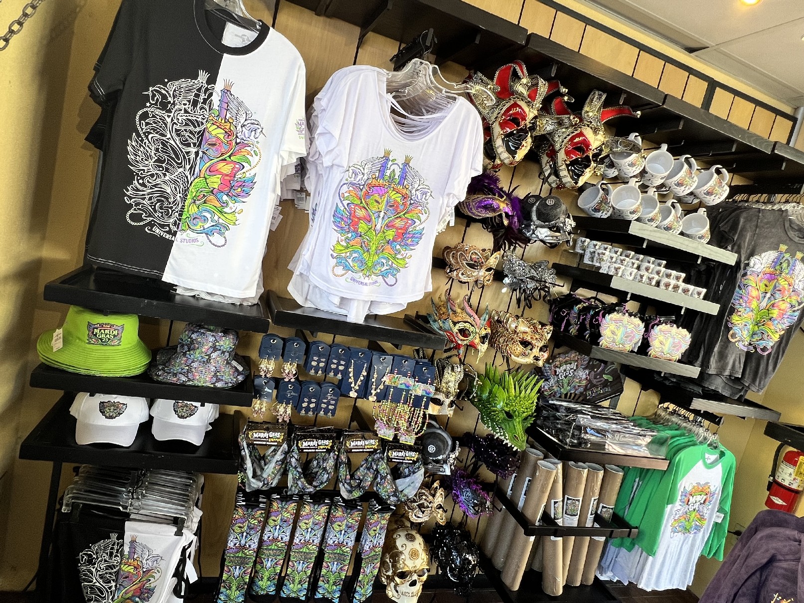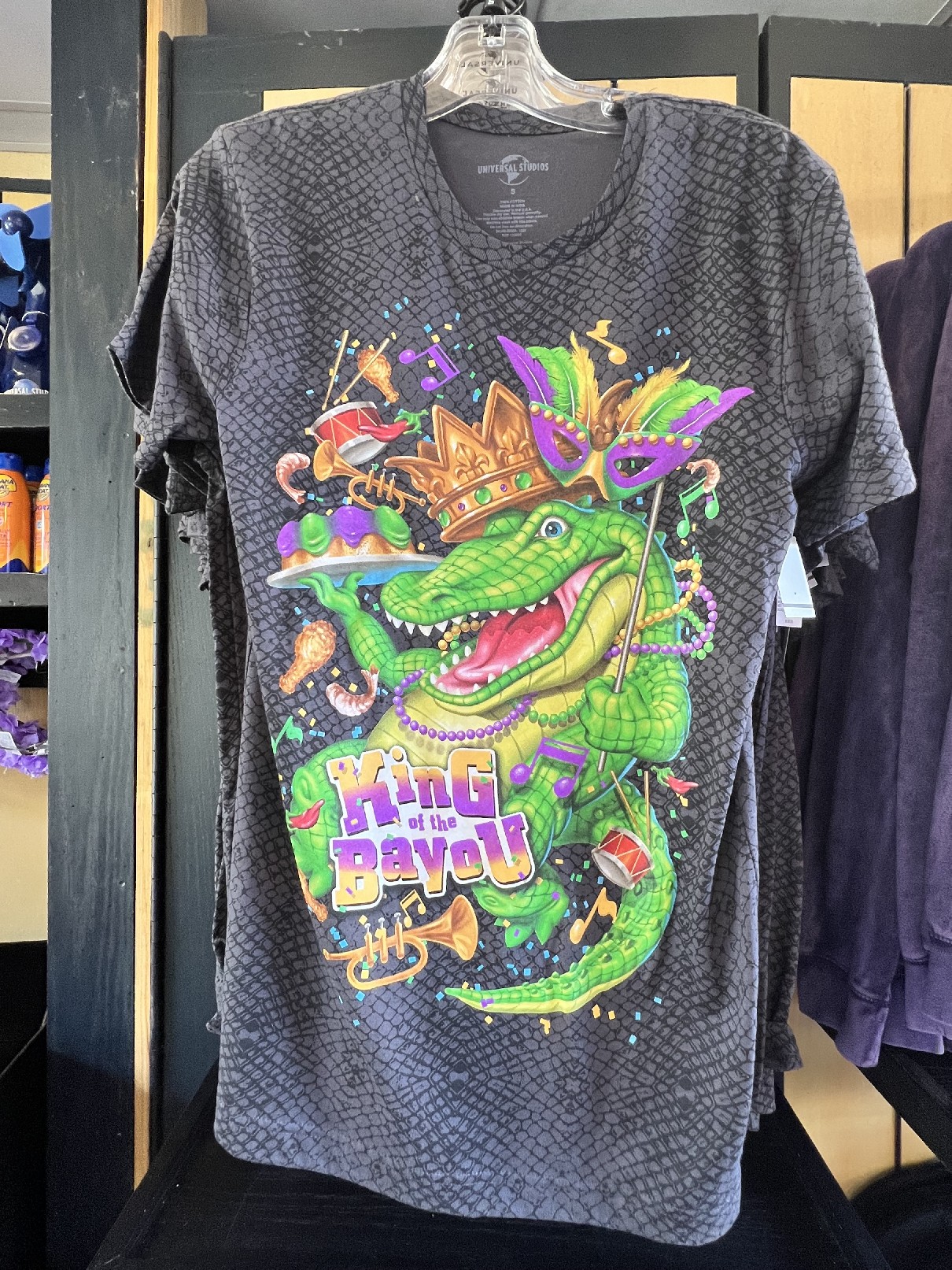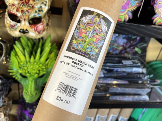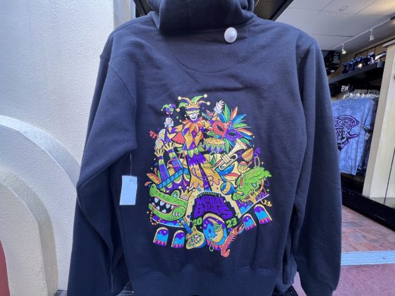 As of now, the only location where merchandise can be found is the kiosk at Universal Music Plaza (across from the Despicable Me: Minion Mayhem exit shop); but more locations will be carrying merchandise soon – especially with the eventual opening of the Mardi Gras Tribute Store.