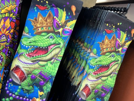 As of now, there are 3 main designs being featured. A majority of this year’s merchandise focuses on the King Gator, featuring the tagline “King of the Bayou”. The other featured design focuses on this year’s theme of “Mythical Creatures”.